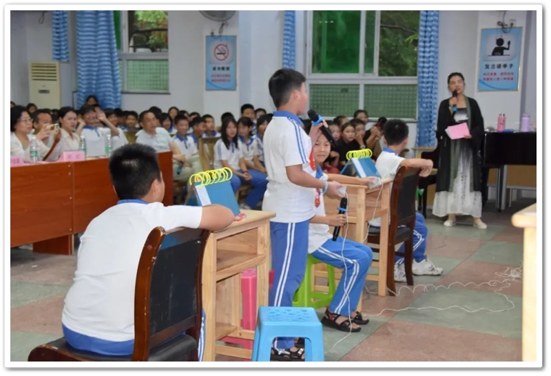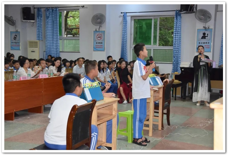 本年度因为《三国演义》片尾曲《滚滚长江东逝水》并未被列入音乐教学范围,本场知识竞赛没有闭幕曲,而以阅读课老师王新凤的教学总结发言作为尾声。王老师说: