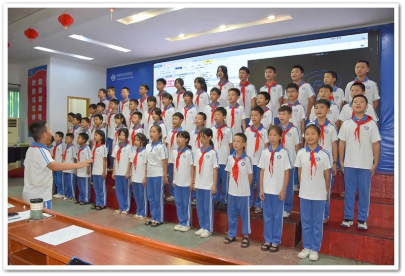 有这样一首童谣,用最简单质朴的语言,再现卢沟桥地区发展变迁的千年历史画卷。363班演唱了《编花篮》《卢沟谣》,孩子们通过歌声展现了中华民族不屈不挠的精神,孩子们动听的歌声向我们诉说着这段难忘的红色记忆。