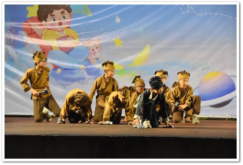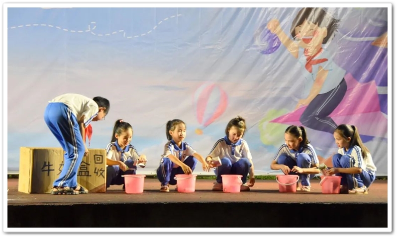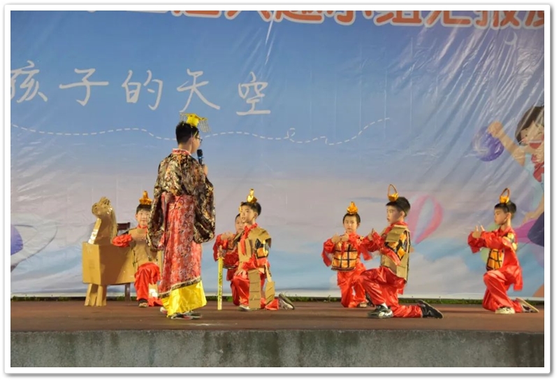 正源小学部融入低碳生活的环保理念,培养学生的美术核心素养,激发学生自觉地去保护自然资源。美术兴趣小组的节目《梦回秦朝-兵马俑》,将美术、音乐与戏剧结合呈现于舞台,形式新颖,体现出小学美术兴趣小组综合了历史、语文、环保理念等元素。