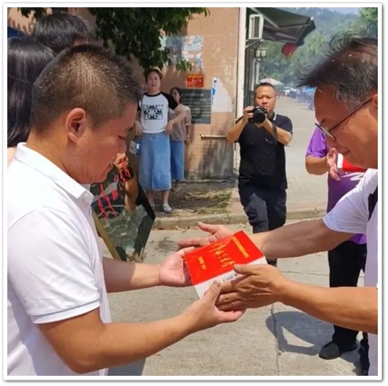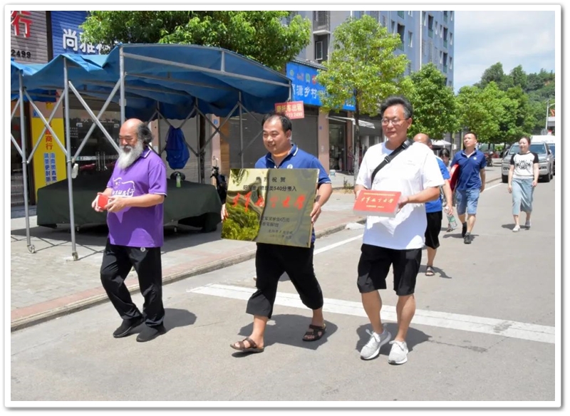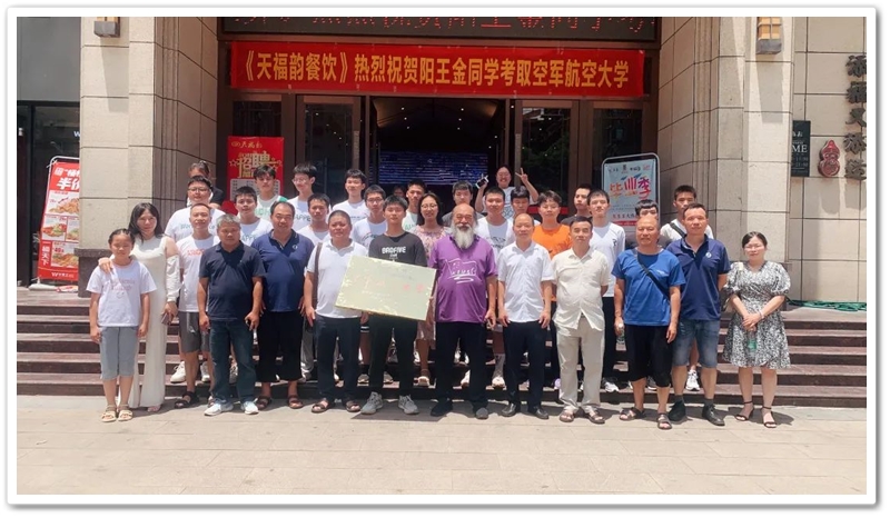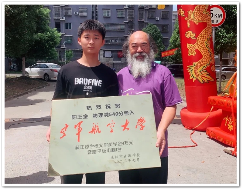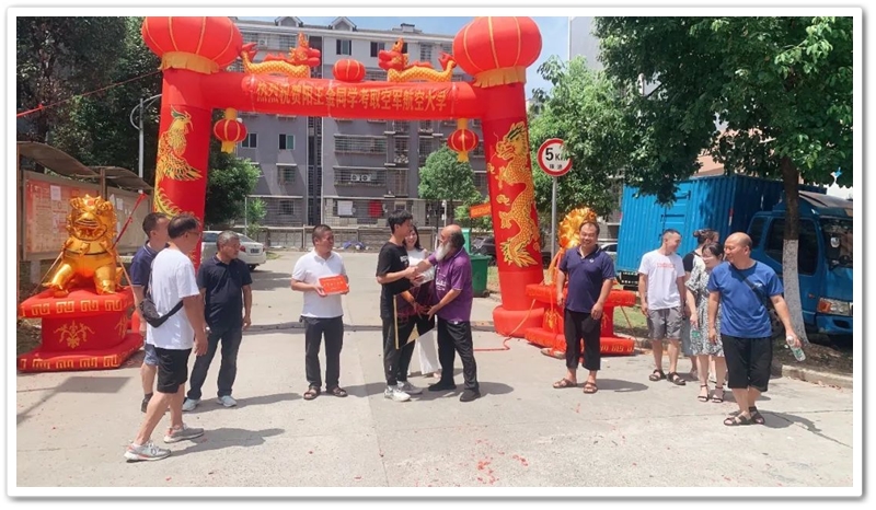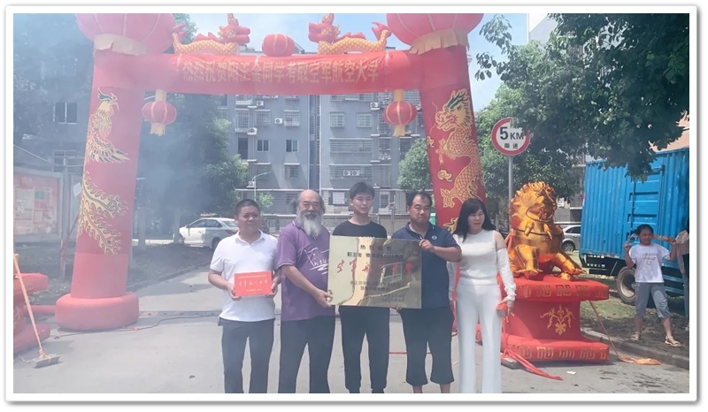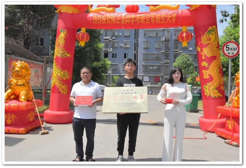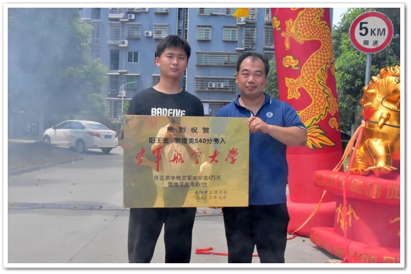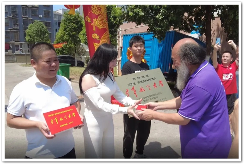 7月12日,罗校长率阳王金高中年级主任陈斌、初中年级主任徐作耘、班主任王雪峰及初高中任课老师,带着铜匾、华为平板电脑和4万元文军奖学金,来到余庆联平安置小区,祝贺阳王金物理类540分考取空军航空大学飞行学员,喜气洋洋拉开了2023年高考第一批送奖和家访序幕。