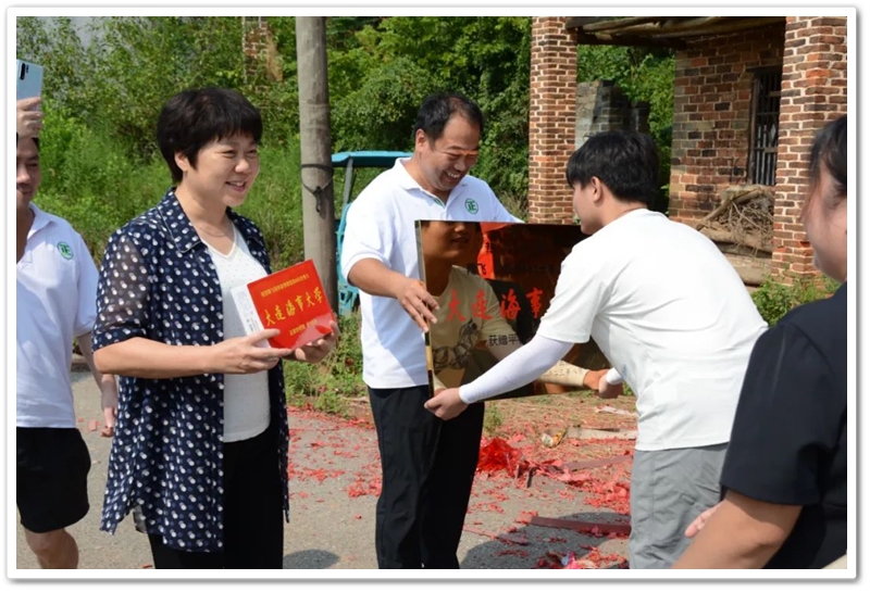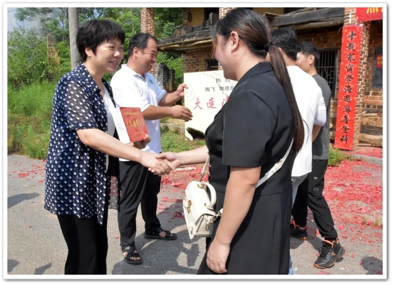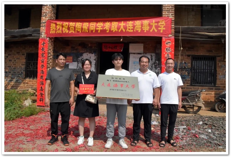 8月5日,校董事会梁晓芬老师率高三年级主任陈斌、班主任王雪峰和老师同学们,带着铜匾和平板电脑来到哲桥镇和平村9组,祝贺山冲里的留守孩子陶飞物理类603分考取大连海事大学信息工程专业。
