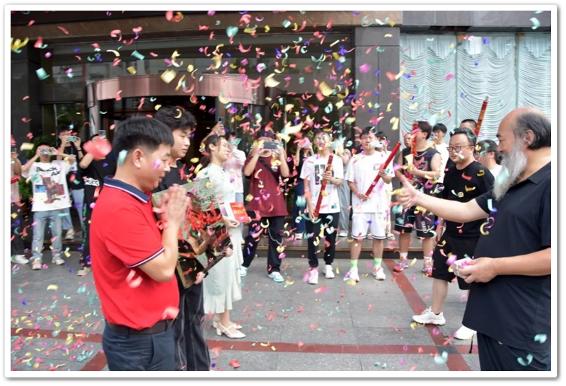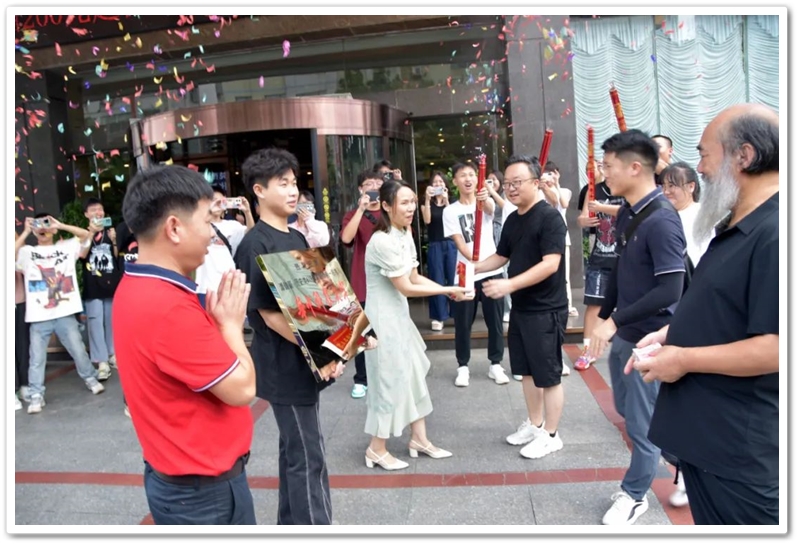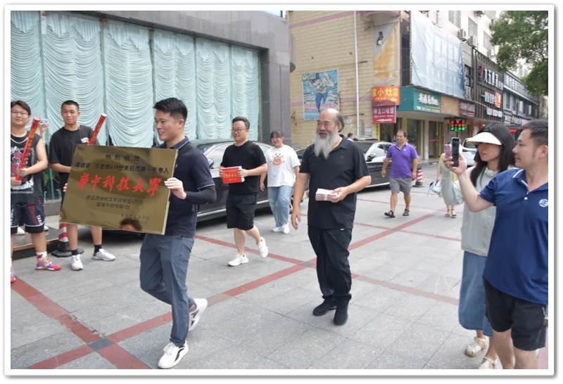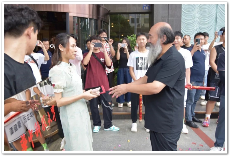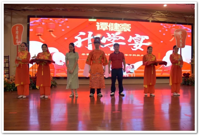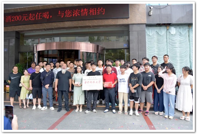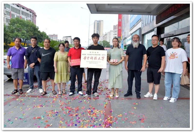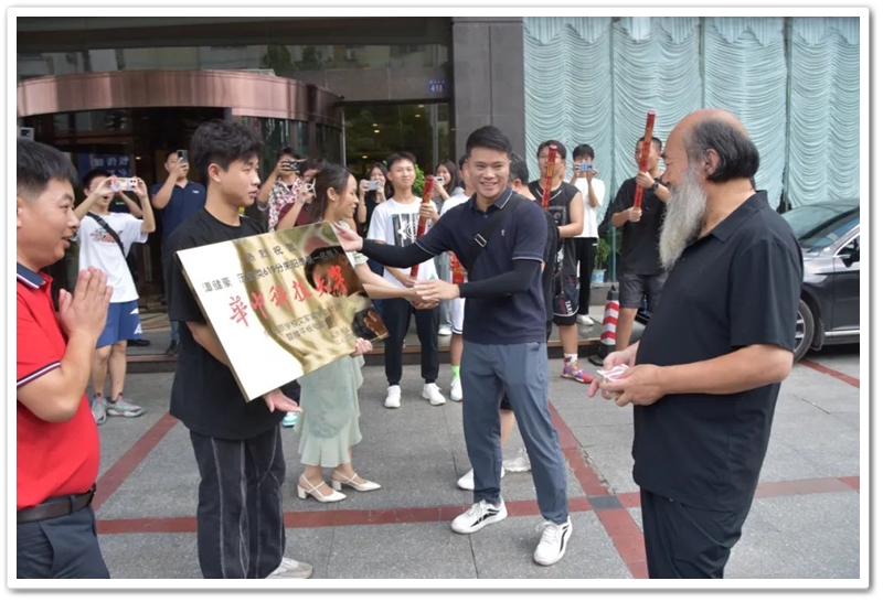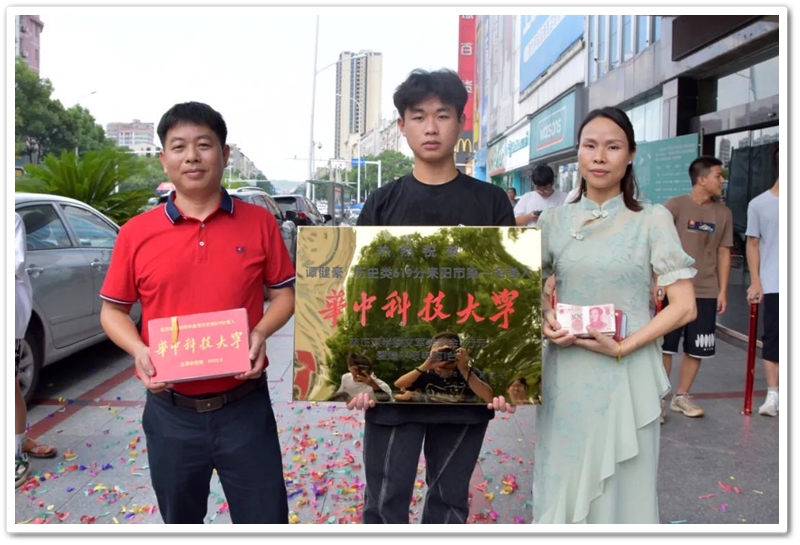 8月4日,罗校长率高中班主任鲁晓林、初中班主任石海玉及老师同学们,带着铜匾、平板电脑和4万元文军奖学金来到城北路,祝贺谭健豪历史类619分、耒阳市第一名考取华中科技大学。