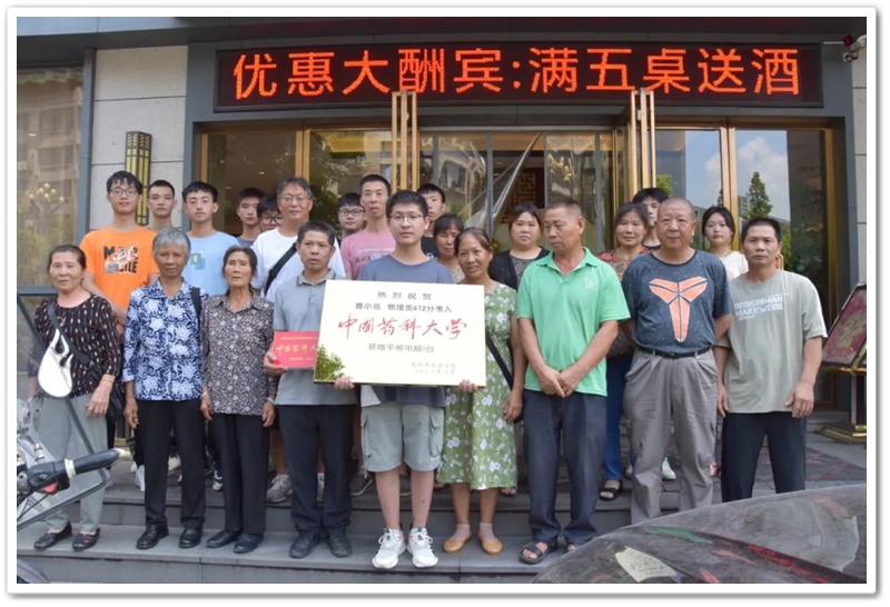 8月23日,曹启证夫妇在德泰隆路杏花村酒店举办升学宴,庆祝儿子曹小亮物理方向612分考取中国药科大学。