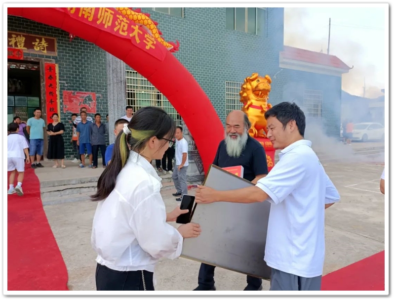 20分钟以后班主任和任课老师如约而至,班主任向苏老师手捧牌匾在前,贺喜队伍一行举行了隆重的颁奖仪式。