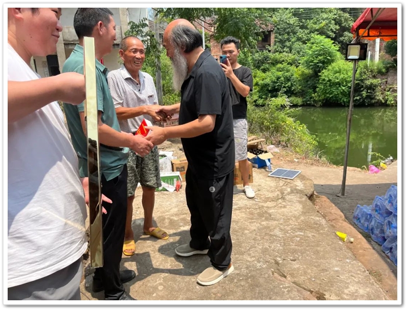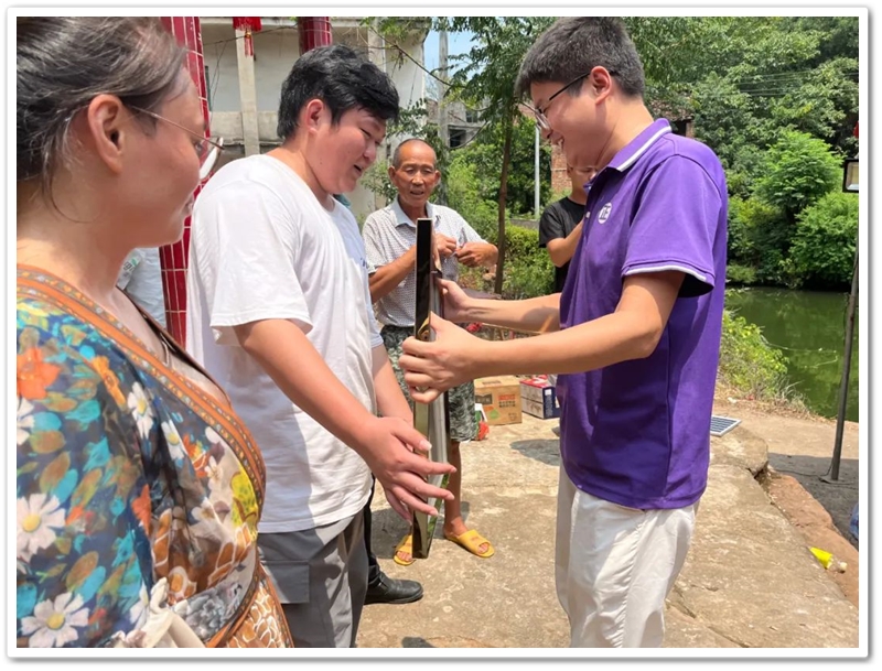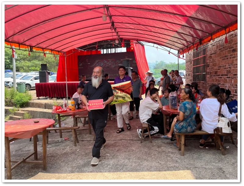 桃李塘湾正厅屋门前,罗校长为雷飞颁发“最强逆袭奖”,祝贺雷飞考取辽宁师范大学人工智能专业。