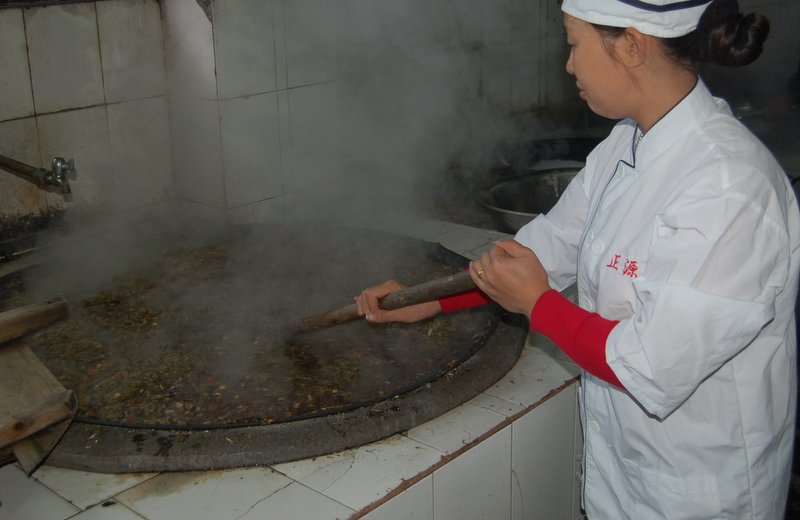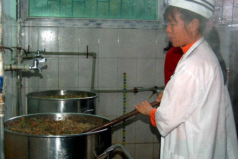 食堂人员熬制中药
