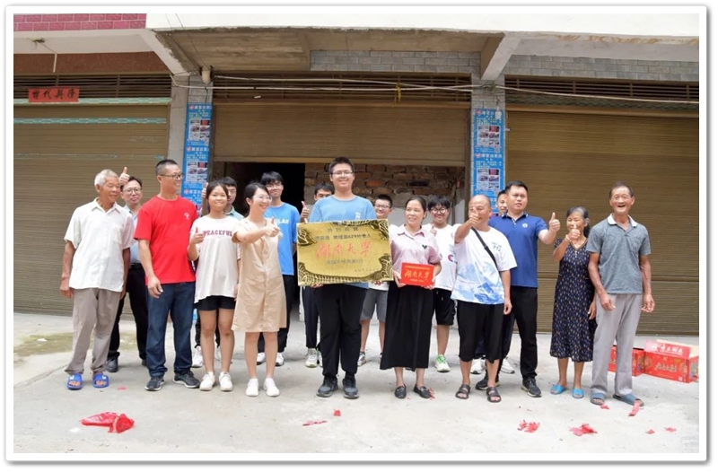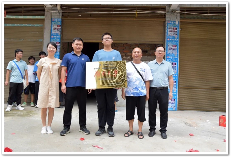 上午十一点多,正源学校领导罗林珂、蒋智敏率班主任谢海鸣等老师到达罗育海家。罗育海一家燃放鞭炮礼炮迎接。罗林珂老师代表学校向罗育海郑重授予奖励铜匾,颁发奖品华为平板电脑。