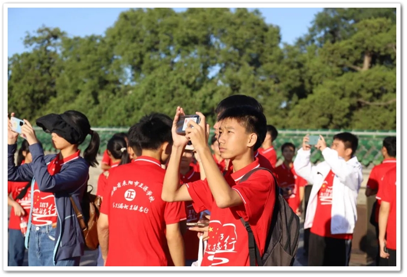 傍晚作别天坛,顾不上吃晚饭,同学们又马不停蹄登车奔赴天安门,要去触摸祖国心脏,感受时代脉搏。