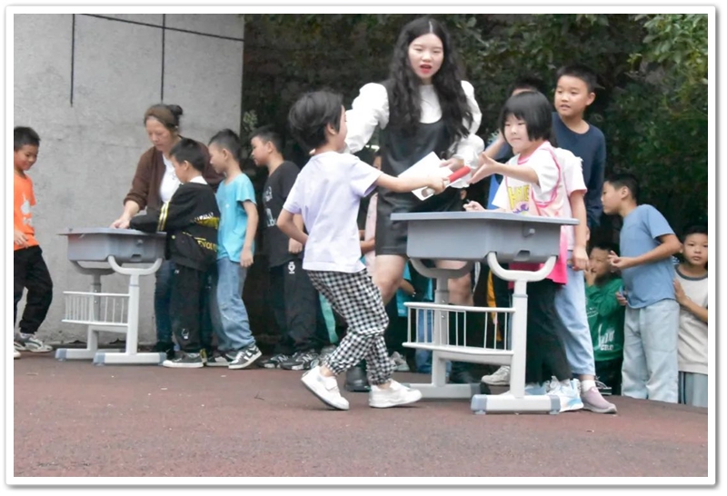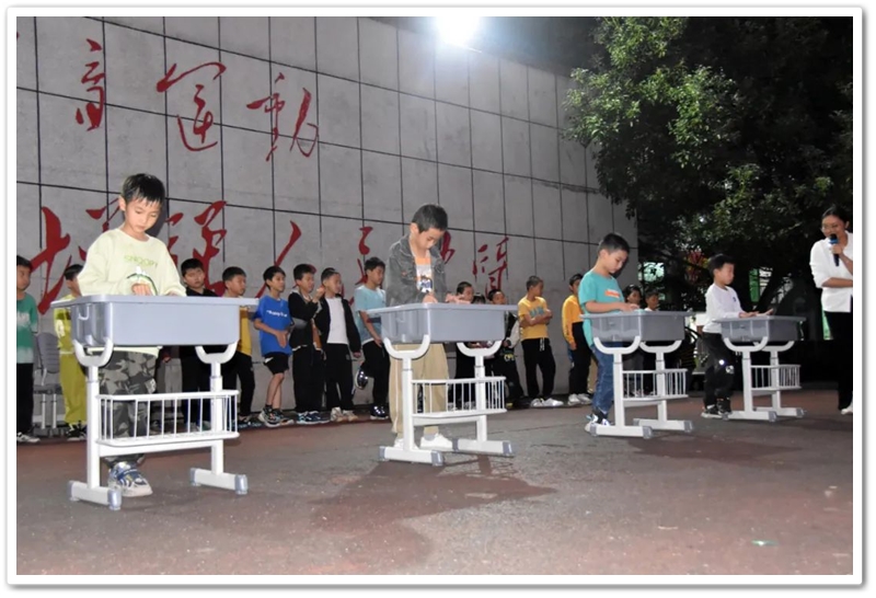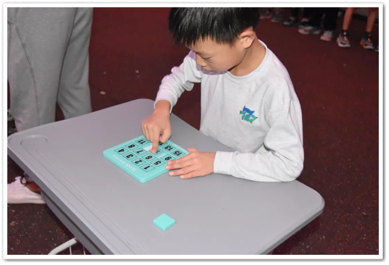 随着主持人王丹老师的登场,活动进入第一个游戏:速算接力赛!王丹老师给台下观众简单介绍规则后,台下的小朋友们迫不及待地踊跃报名参加比赛。老师们快速选取了16名参赛选手,分成了两组,男生组和女生组。参赛的选手们在台上大显身手,迅速写出正确答案,完成接力。随着台下观众大声的加油,女生组个个对答如流,步伐矫健,一举拿下了速算接力赛的冠军!