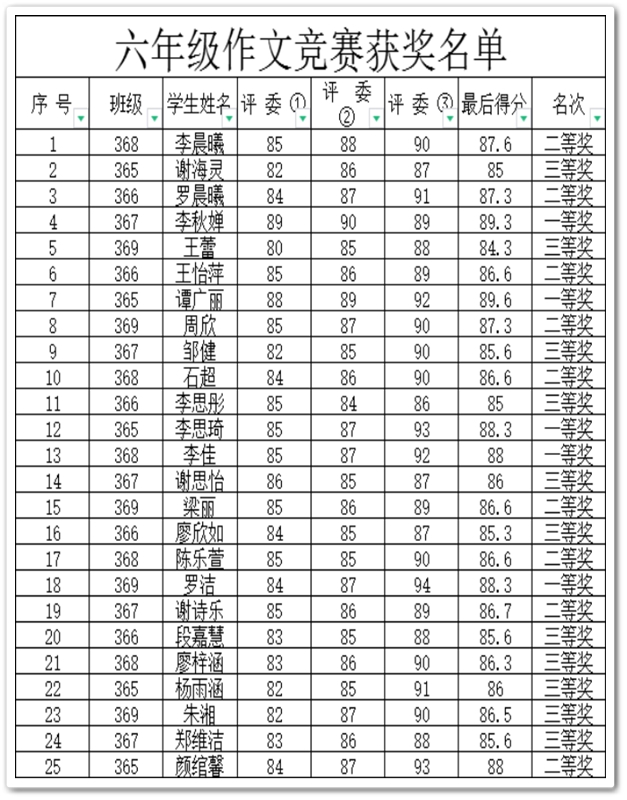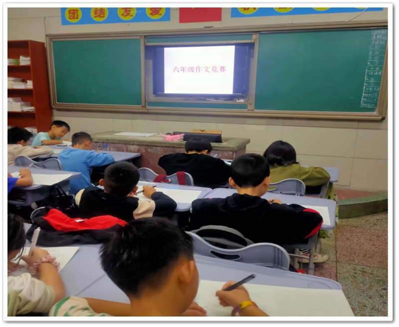 本次作文比赛分为初赛和决赛两个阶段,参赛对象为六年级全体学生。六年级各班参赛学生在班内进行初赛。初赛由年级统一命题,评卷由六年级全体语文老师负责,每班择优选出五名学生参加决赛。