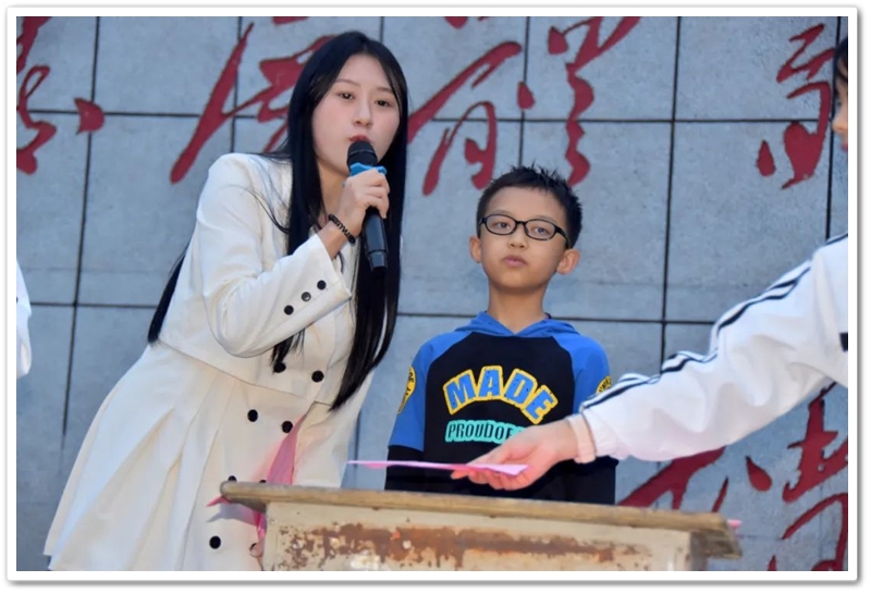 看图画猜成语环节将现场气氛推向了高潮。这个活动就是给孩子们看一张图片,然后根据图片上的内容猜出一个成语。孩子们互动参与,让现场观众充分感受到了活动的乐趣。孩子们轻松愉悦的笑声充满了自信,展示了他们在活动中的快乐成长。