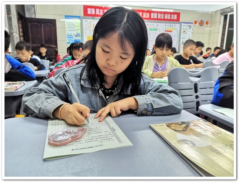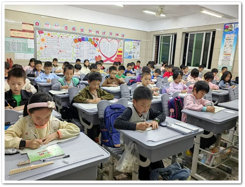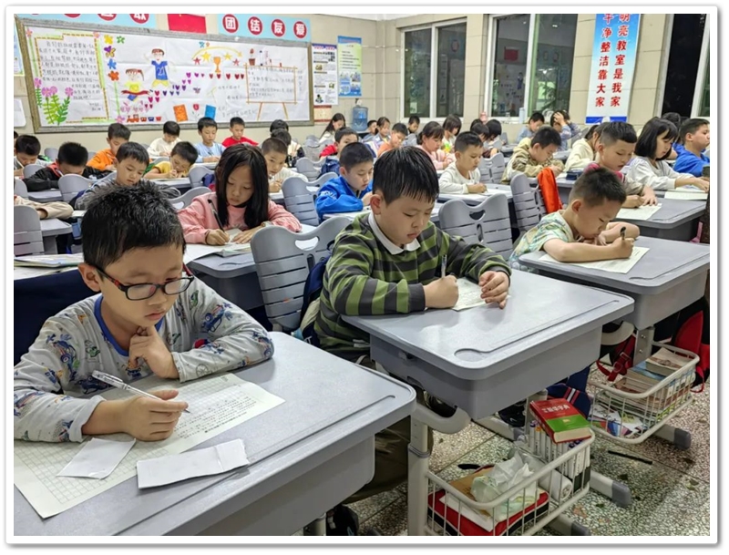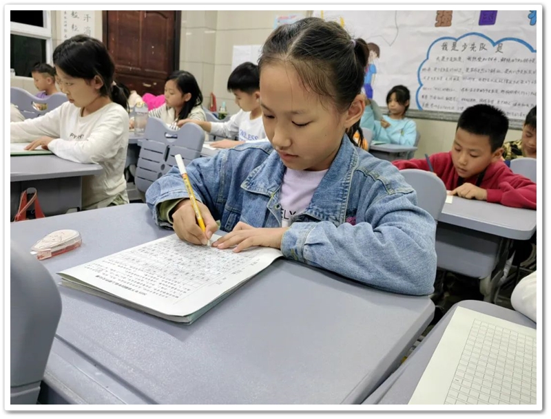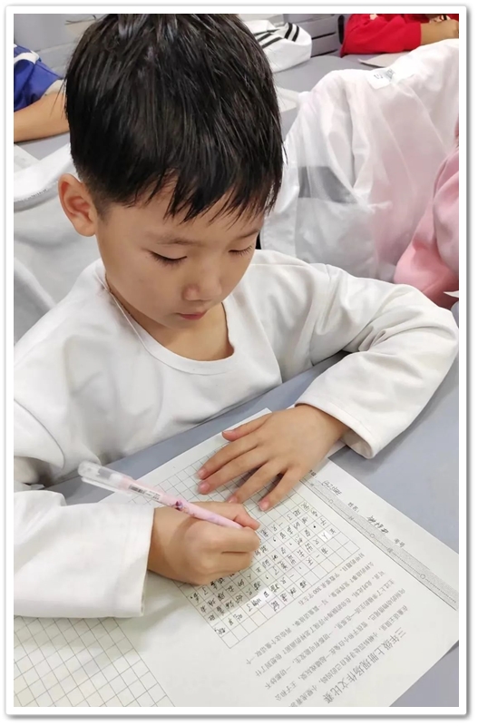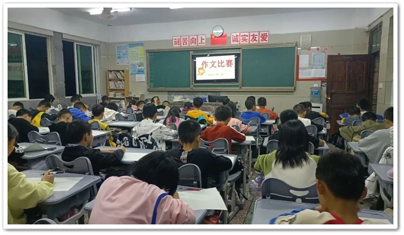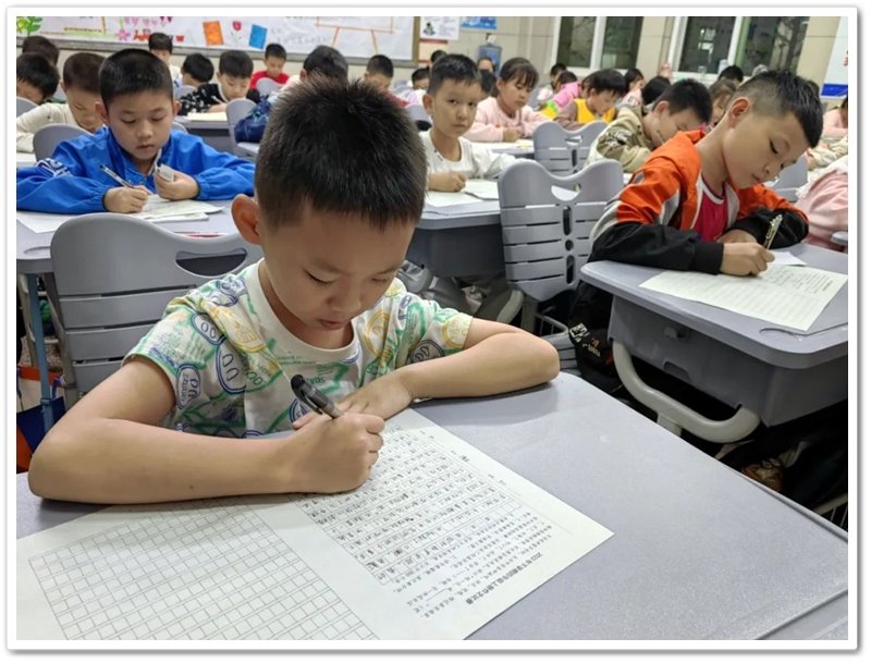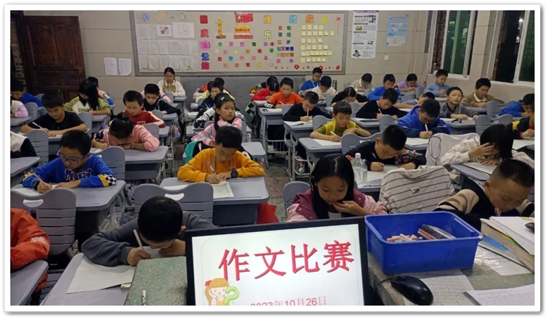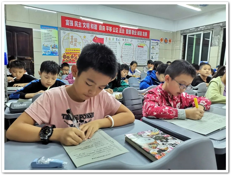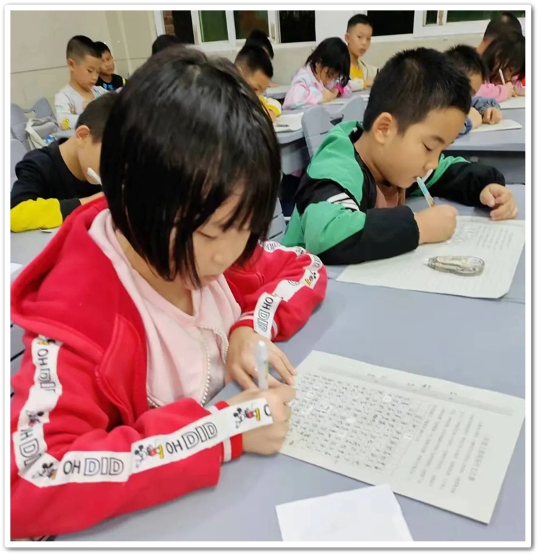 60分钟的时间里,同学们认真审题,从不同角度用文字写下了自己的所思、所感、所悟,静谧的赛场上,流动着“沙沙”的书写声,洁白的纸上字里行间洋溢着童真童趣,流露出真情实感。