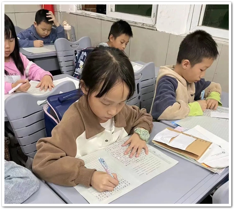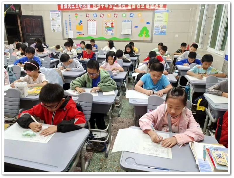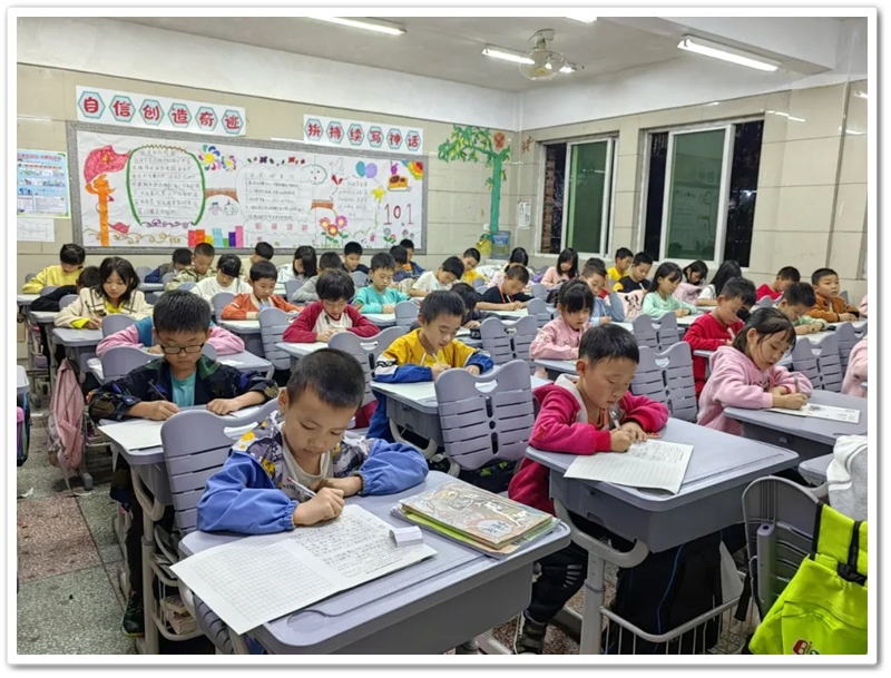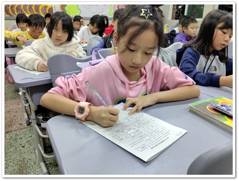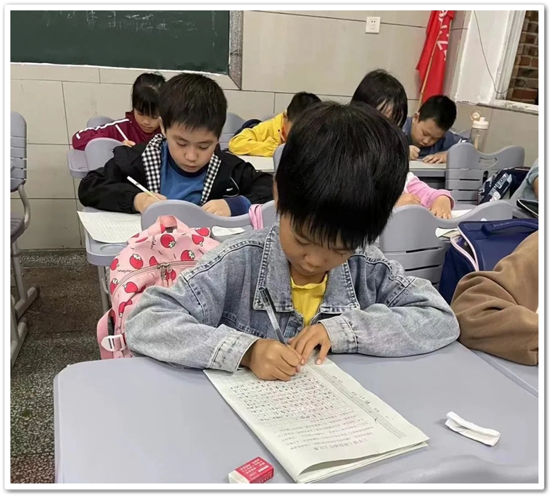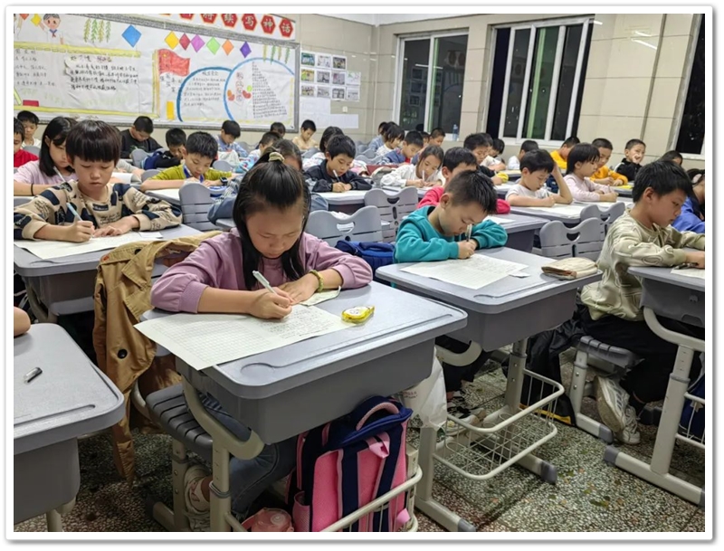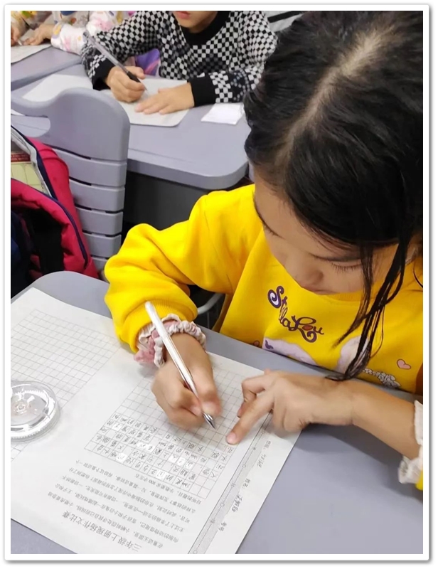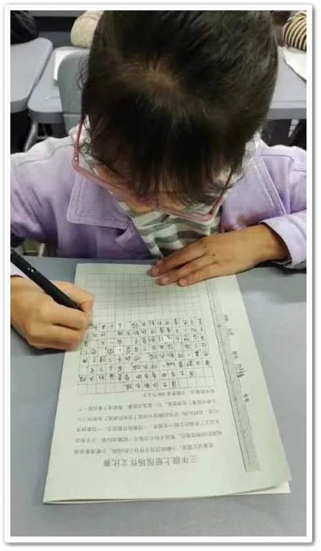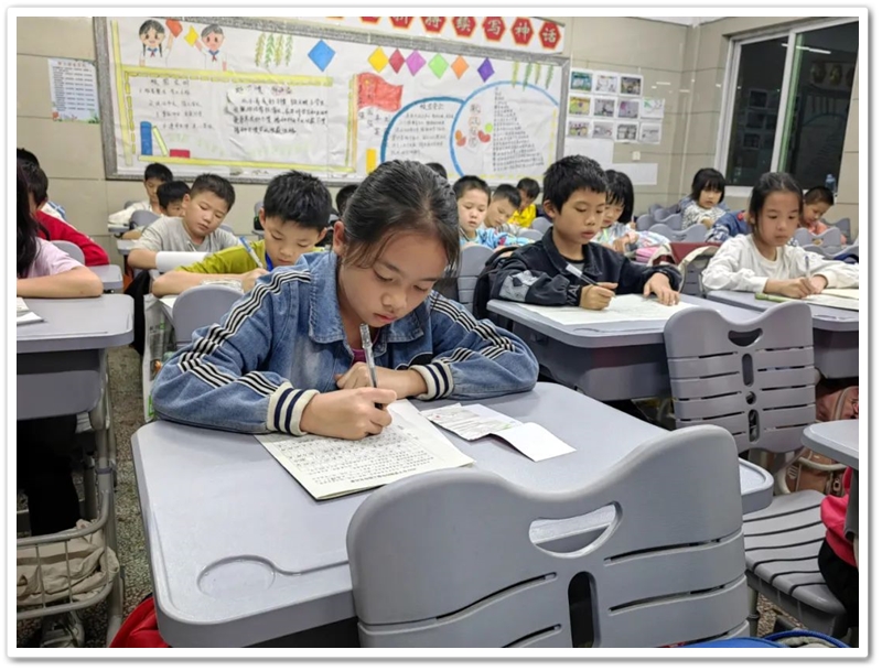 60分钟的时间里,同学们认真审题,从不同角度用文字写下了自己的所思、所感、所悟,静谧的赛场上,流动着“沙沙”的书写声,洁白的纸上字里行间洋溢着童真童趣,流露出真情实感。