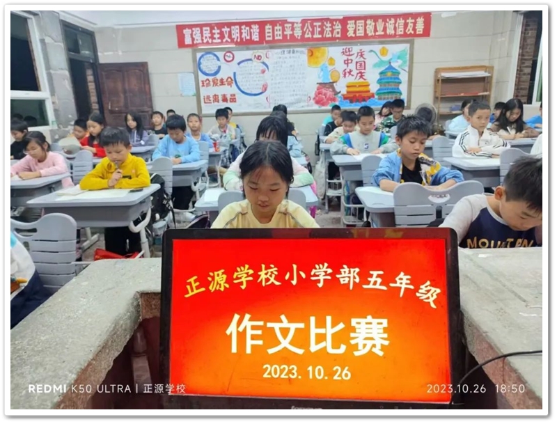 为丰富同学们的校园文化生活,激发他们的习作兴趣,培养他们积累好词好句的习惯,正源三、四、五年级语文组于10月26日举行了年级作文大赛。