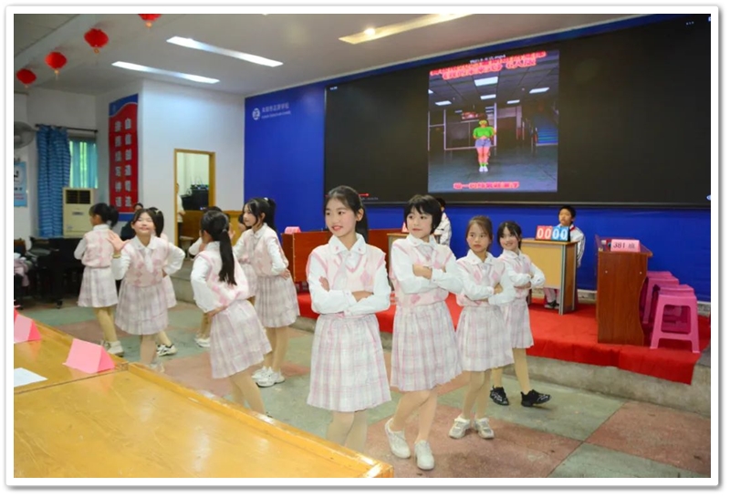 “唐诗里有画,唐诗里有歌,唐诗像清泉流进我心窝……”年级同学在边唱歌边跳手势舞的欢快气氛中,进入了晚上场的比赛中。
