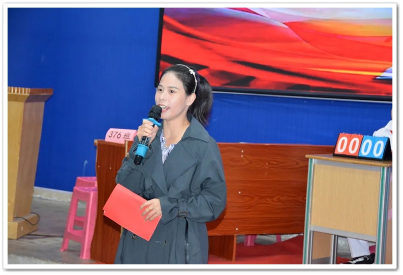 比赛开始了,首先出场的是376班VS381班,每队队员精神抖擞,信心十足,仿佛冠军已经牢牢地被他们握在手中。在第四环节结束后双方队员战成平局(17比17),最终在加赛题这一环节中381班以18比17的1分优势,取得第一轮胜利,顺利进入第二轮。