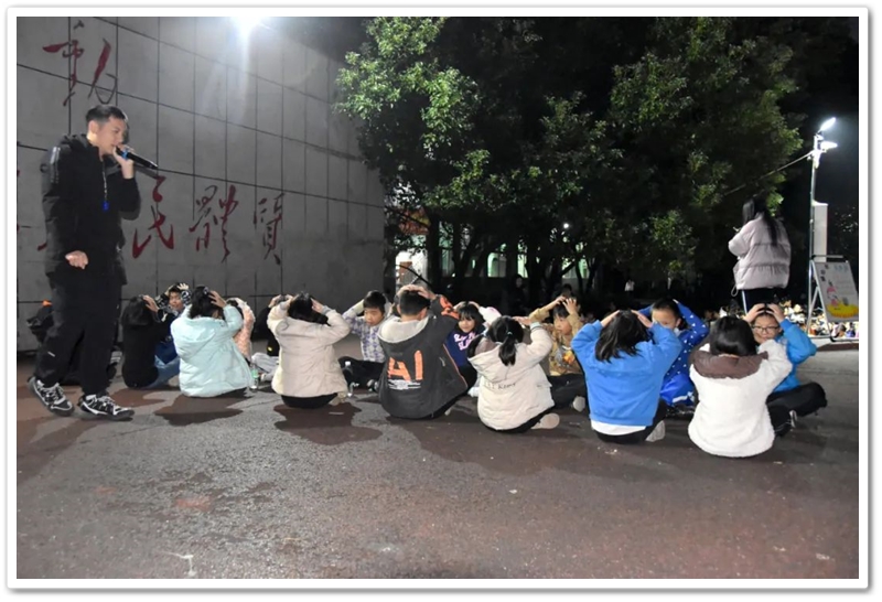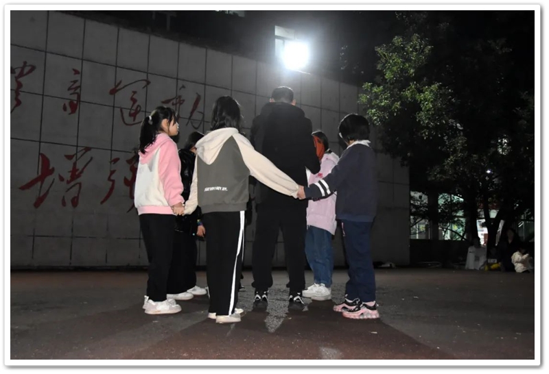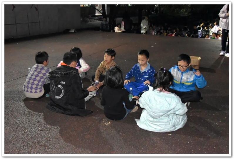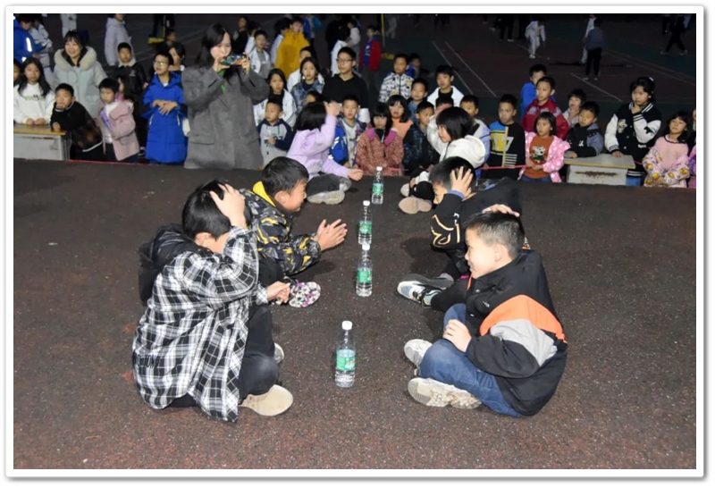 初冬的夜已完全降临,操场上莹莹暖暖的灯火亮起,舞台旁围观的孩子们还在认真的观看,他们有的拍手高呼,有的谈笑风生,有的认真而专注的观察着舞台上的动静,仿佛那参加比赛的人儿如是自己一般,丝毫没让人感觉到校园冬季的寒凉。只是天公不作美,我们精心准备的四个小游戏,因为天空下起毛毛小雨而不得已提前结束。