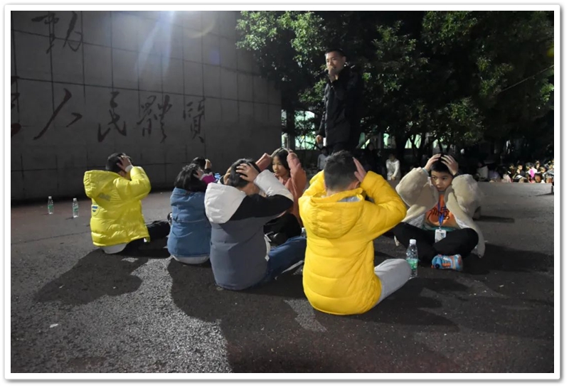 游戏开始了,选手们严阵以待,随着姜老师发出口令,同学们也随之做出相应的动作,或向前,或后退,或举手或拥抱……