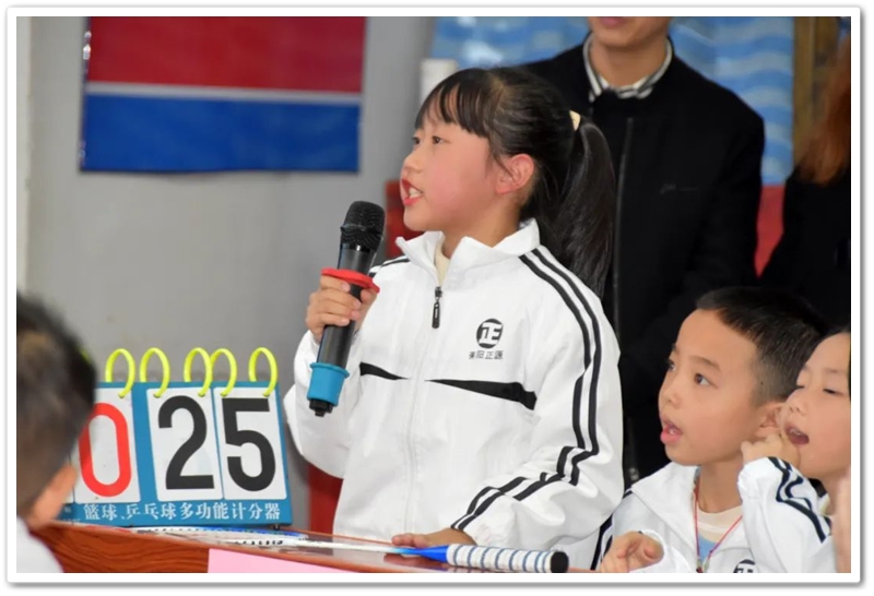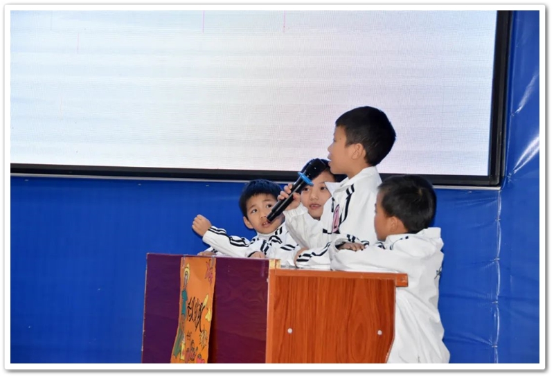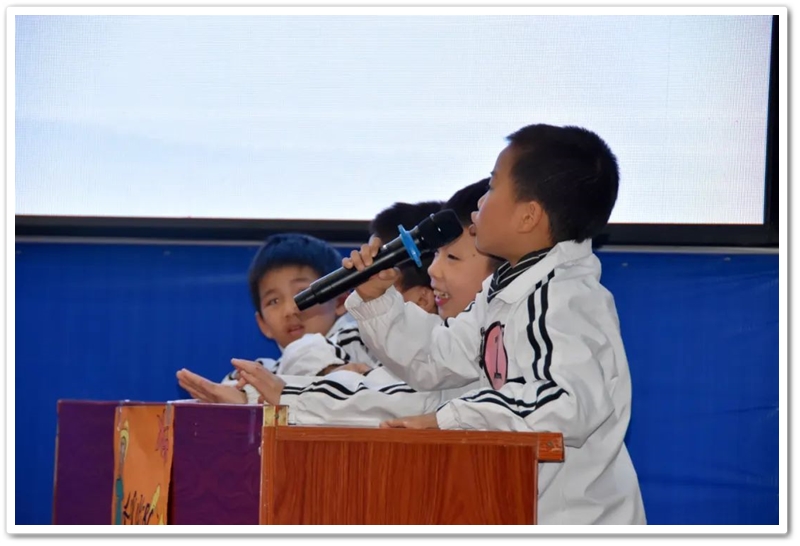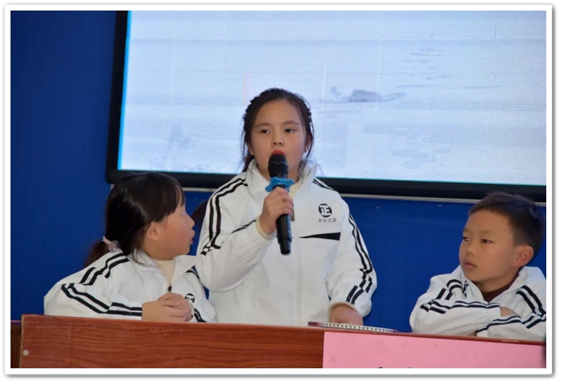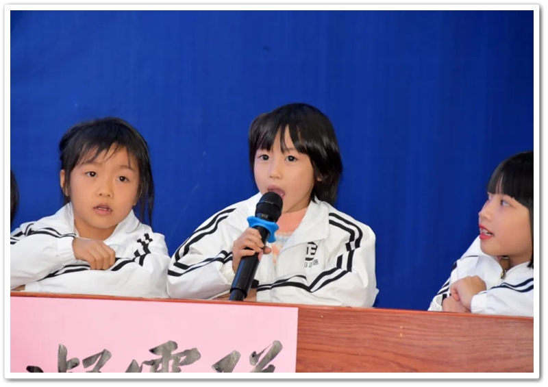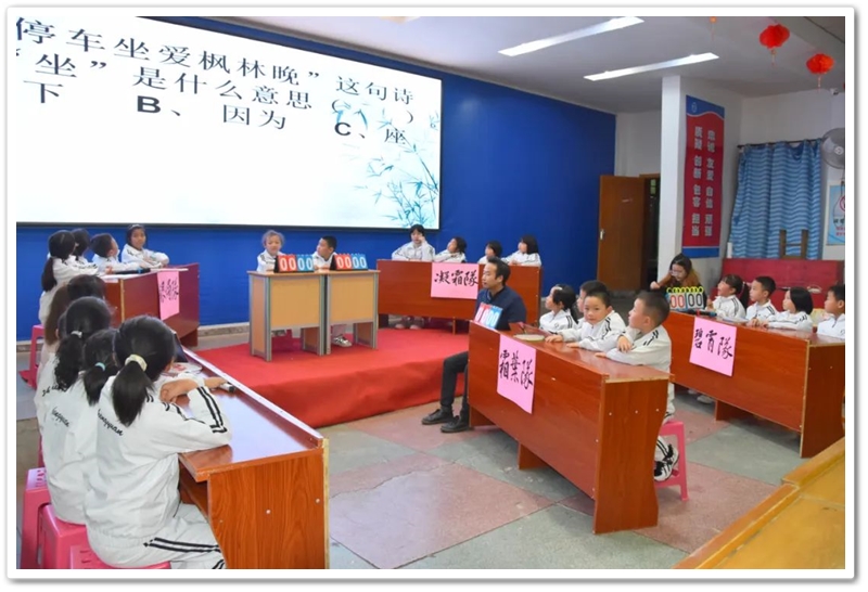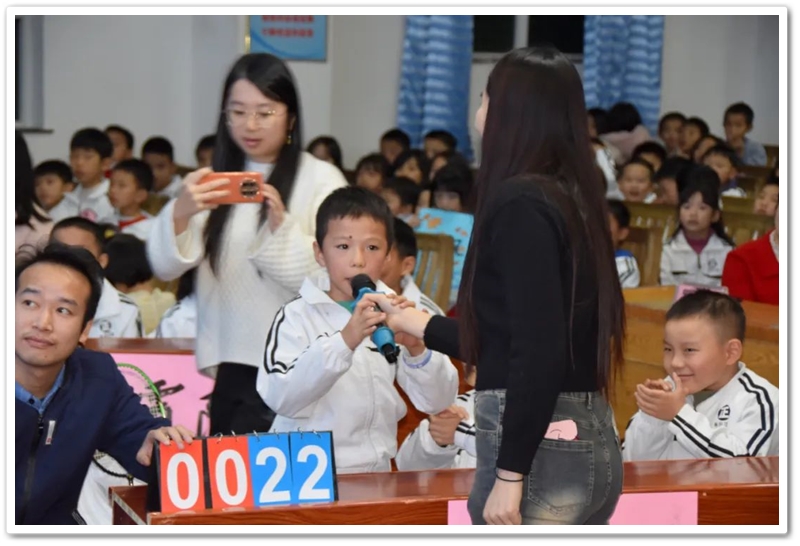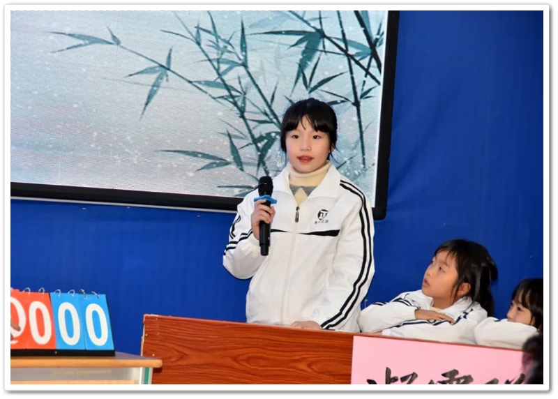 孩子们就地取材,分别从背诵的古诗词当中提取自己的口号及队名。本次大赛三年级的孩子们采取积分制的形式,五个班级齐上阵。通过4个环节的比拼,最终通过最后的得分产生冠军。整个比赛过程中,五个班级的同学们,他们都以极高的热情和认真的态度对待这次比赛。他们在台上尽情展现自己的才华和魅力,台下的观众们也被他们的表演所吸引和感染。他们的表现赢得了评委们的高度评价和观众们的热烈掌声。