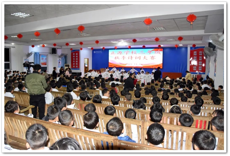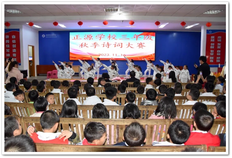 为了让我们承接传统,直面经典,做一个“腹有诗书气自华”的少年君子,一场以秋天为主题的古诗词大赛如期而至。正源学校小学部二、三年级于11月16日晚在报告厅举行了秋天诗词大赛。这场大赛不仅是一场展示学生古诗词才华的盛宴,更是一次对传统文化热爱和传承的精彩演绎。
