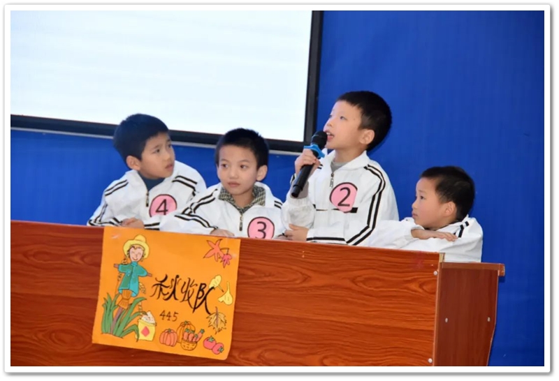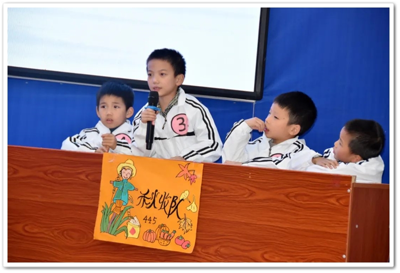 二年级的六个班级分别以秋风、秋雨、秋霜、秋月、秋实、秋收为队名,十分的应景,加上孩子们激情响亮的口号声,使得全场气氛达到了最高潮。