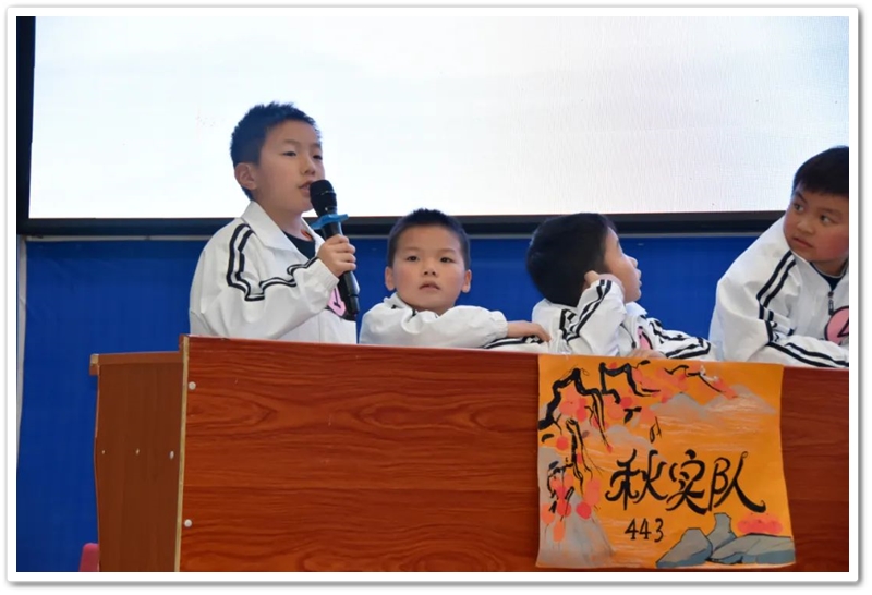 443班秋实队:秋实硕果迎大赛,勤学苦背记诗词。3班3班,猛虎下山。秋天诗词大赛,我们来啦,Year!