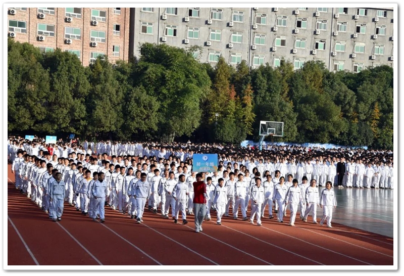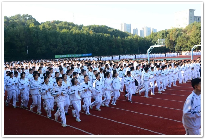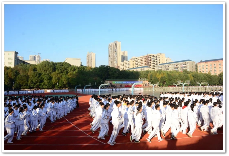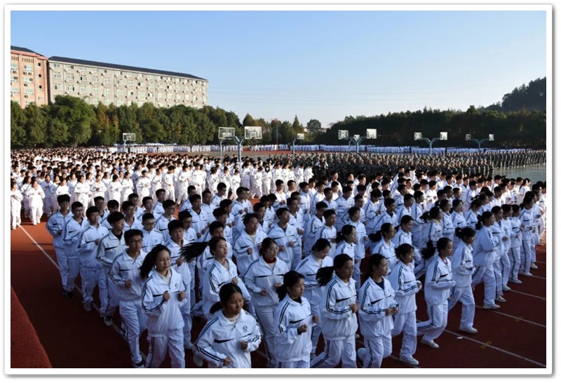 11月21日早晨8点过8分,晴空万里的中学生运动场上,126个跑操方阵组成的白色长龙闻令而动。曾两次荣登央视,多次向全国人民展现新时代少年风采的正源学校万人跑操震撼登场!由北向南,由西向东,环场奔跑两圈过后,白色长龙分南北两路汇入操场。立定整队、昂首挺胸,洁白的校服方阵、迷彩的旗杆基座造型在操场中央铺展开一幅浩瀚画卷。
