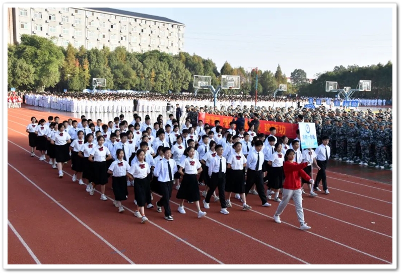 方阵队员们步履坚定,神采奕奕走过主席台前。龙狮方阵、各年级表演方阵、裁判员代表方阵、各年级运动员代表方阵紧随其后一一入场,缤纷的道具、五彩的服装、洁白的校服、飒爽的英姿引得全场同学翘首以盼、欢呼阵阵。