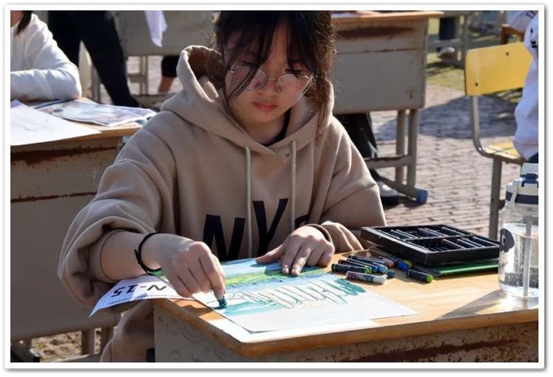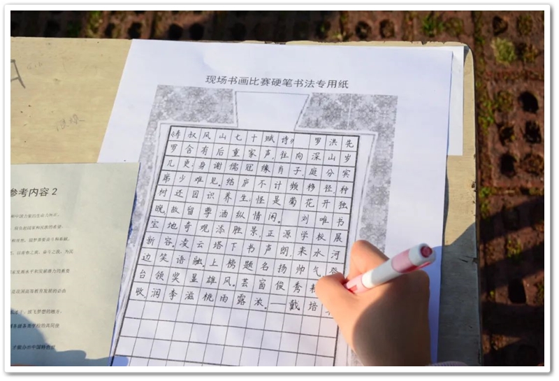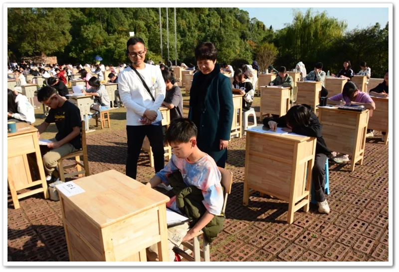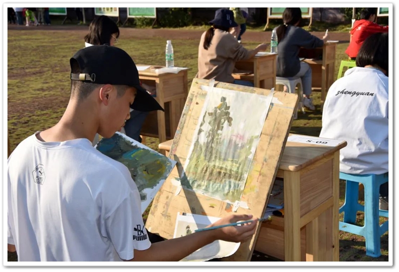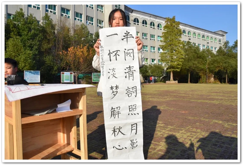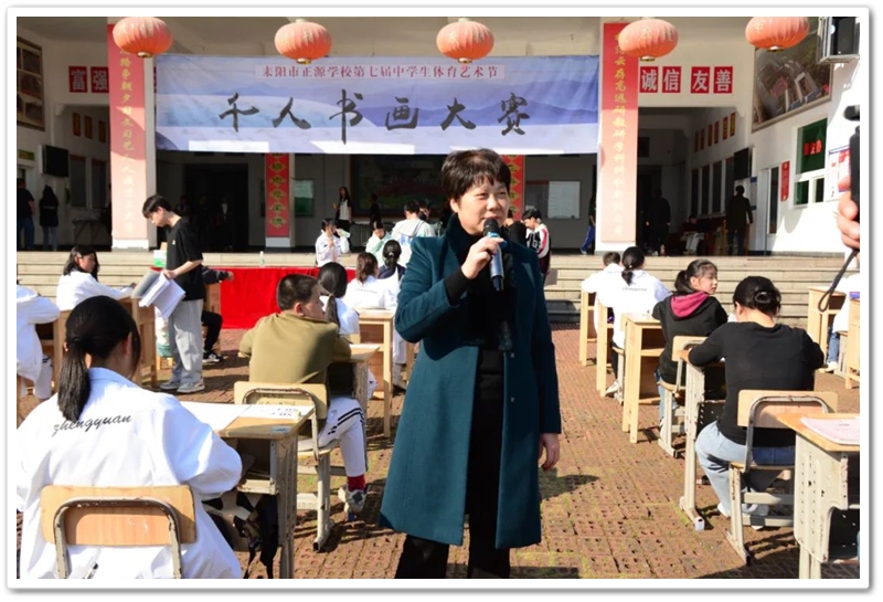 11月22日,正源学校第七届体育艺术节第二天下午两点半,正源广场上砖红草绿,书桌密布,翰墨飘香,蔚为壮观的千人书画大赛拉开帷幕。