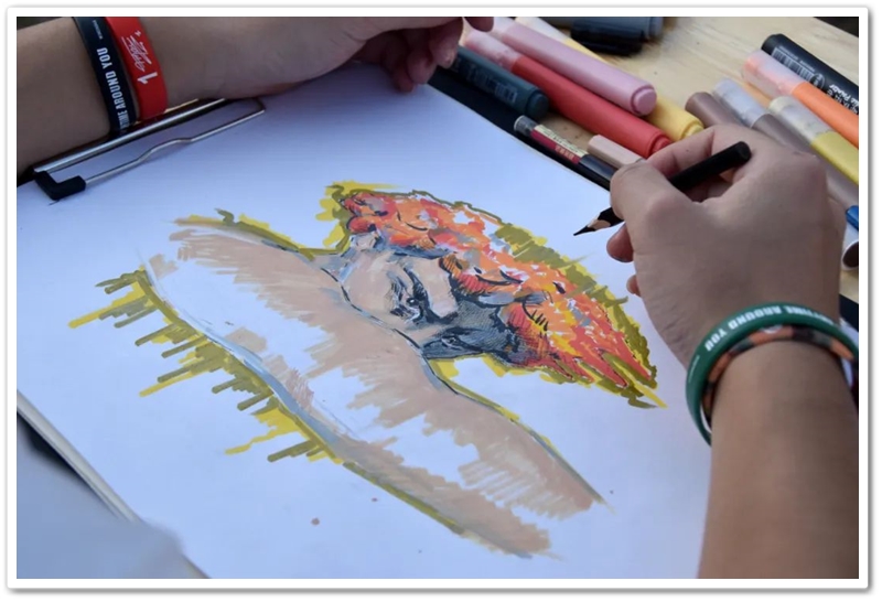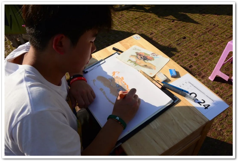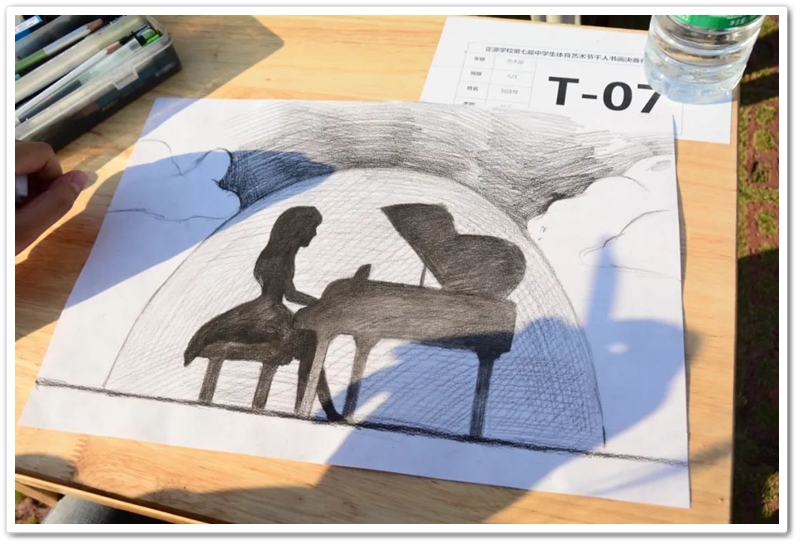 漫步于行行书桌端详着个个同学,梁老师不时驻足频频颔首,笑容满面兴致盎然。曾任城北小学语文教研组长的梁老师说,她在郴州师范时音体美等各项体艺课程都要学,书法、音乐、钢琴都学得挺好,唯独美术总是画不好。今天千人书画大赛上,孩子们现场挥笔精彩纷呈,“艺术属于所有孩子”、“农家子弟也能享受艺术的熏陶”弥补了她多年的遗憾,浓浓的艺术氛围让她倍感欣慰。