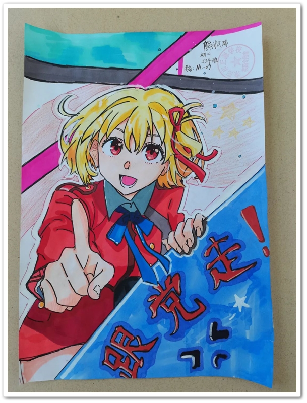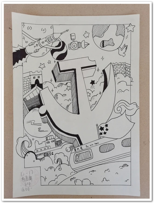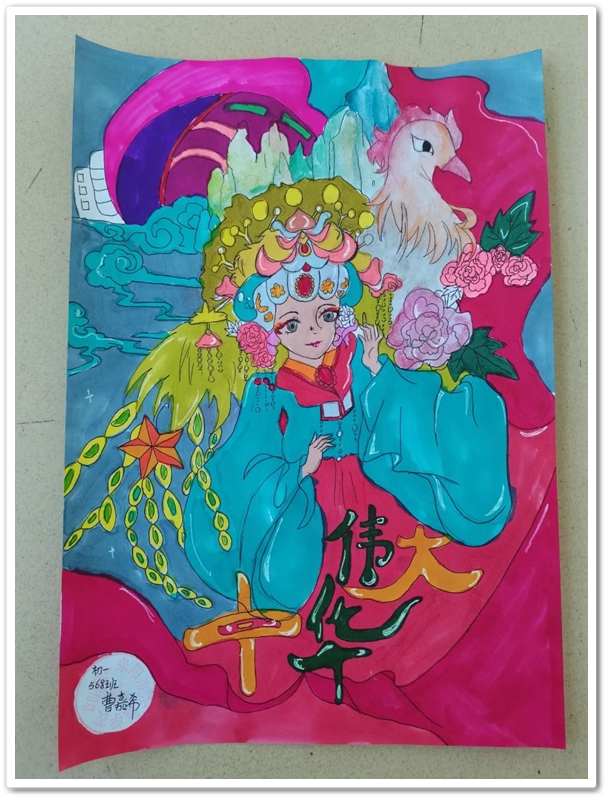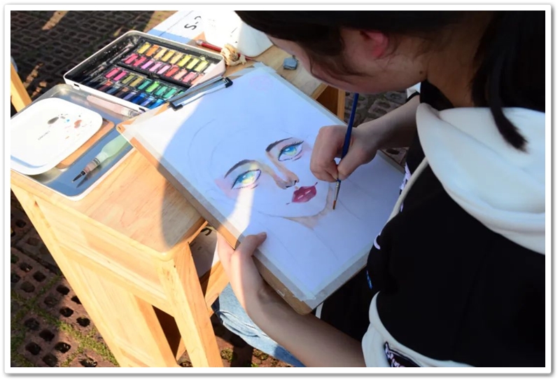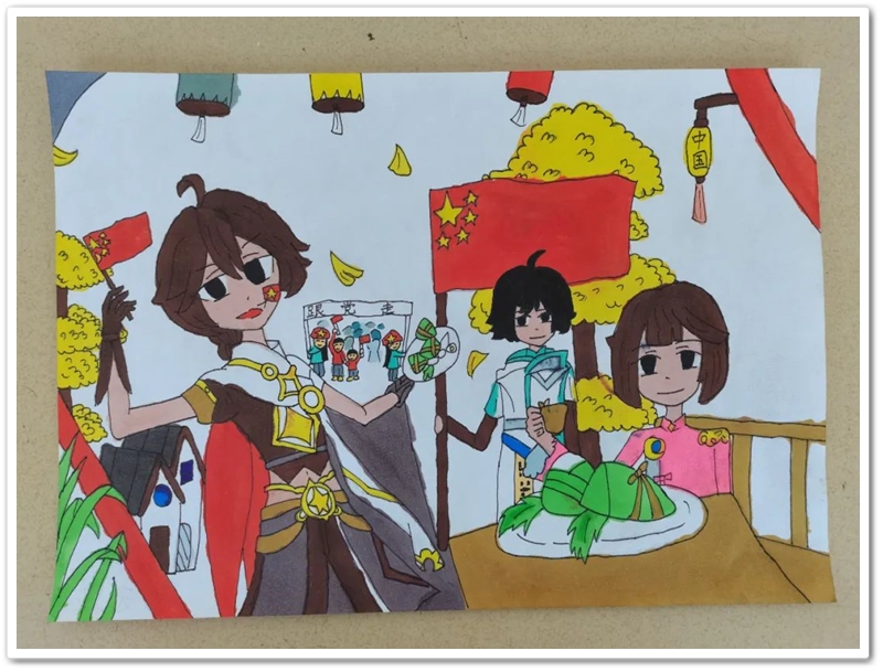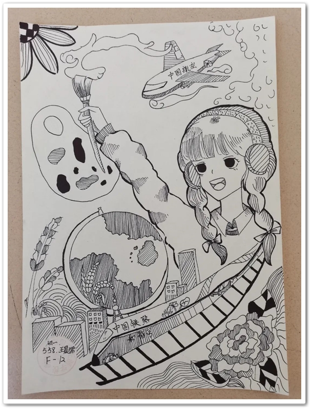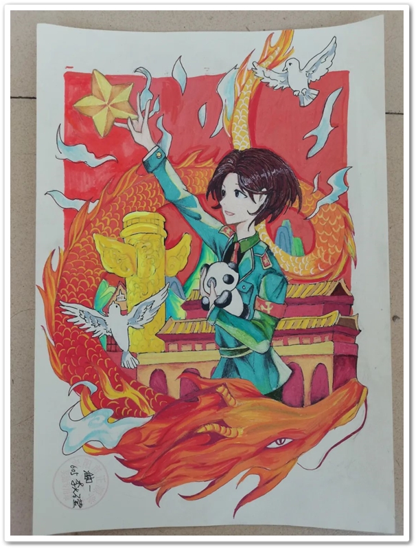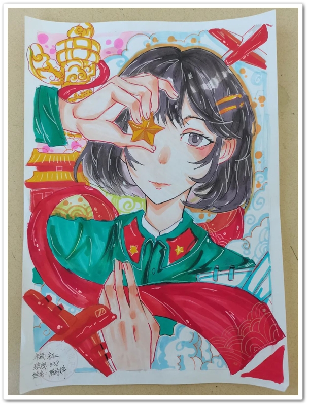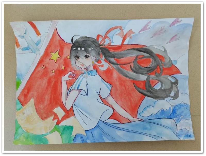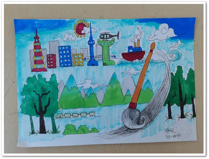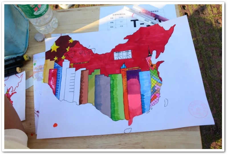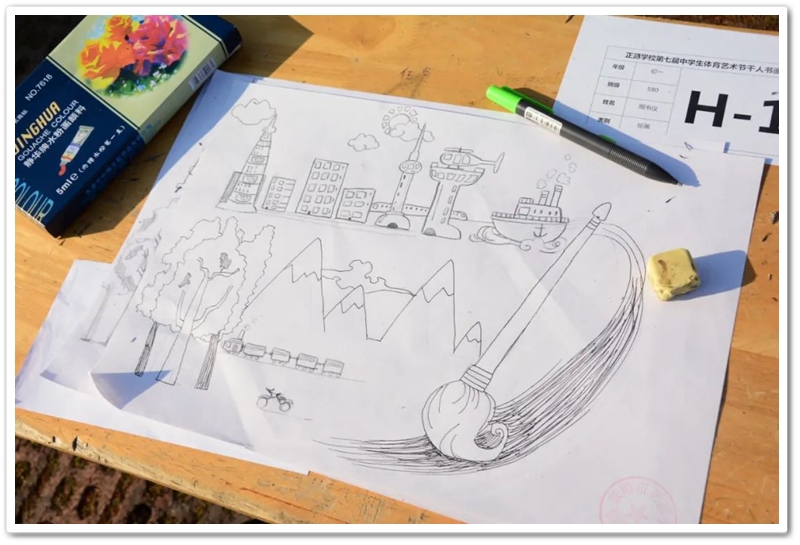 绘画区里,国旗、五星组成的红色主题画,火箭、飞船组成的科技主题画,长城、天安门组成的祖国河山画,美丽正源校园风景画等等素材纷纷出场;素描、水彩、水粉五彩缤纷。