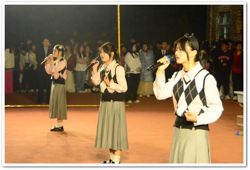 丰富多彩的节目令人目不暇接,最激动人心的则是晚会中场的颁奖仪式。校长夫人、校财务总监梁晓芬,校党支部书记毛小波,副校长兼高中学部主任周济龙,初中学部主任曾良古,艺术部主任罗海辉及各年级主任为校运会各年级团体冠军,校园十佳舞者、校园十佳歌手获奖同学颁发奖牌、奖状、奖杯和奖品,隆重表彰。