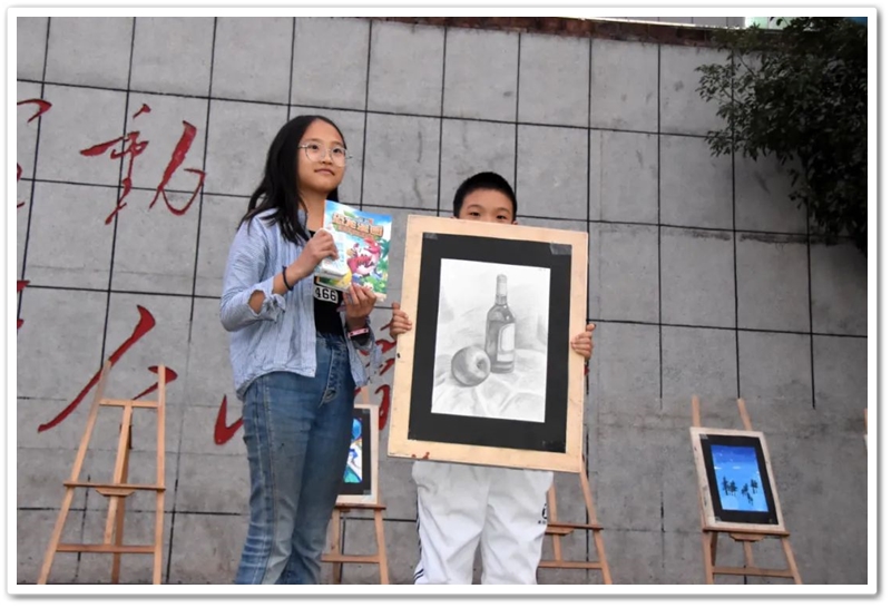 本届拍卖会包含两个环节,即征集的作品拍卖和学生自带的绘画作品拍卖,征集作品共10幅,这10幅画的作者分别来自五年级374班刘雨馨、曹欣然、377班杨紫萱、372班朱紫萱、372班刘熙、372班段家乐,六年级368班张家贝、369班肖栋阳,四年级398班龙玉妮,三年级425班罗文,二年级442班肖旨诣。竞拍方式以物品交换作品、才艺交换作品两种形式。