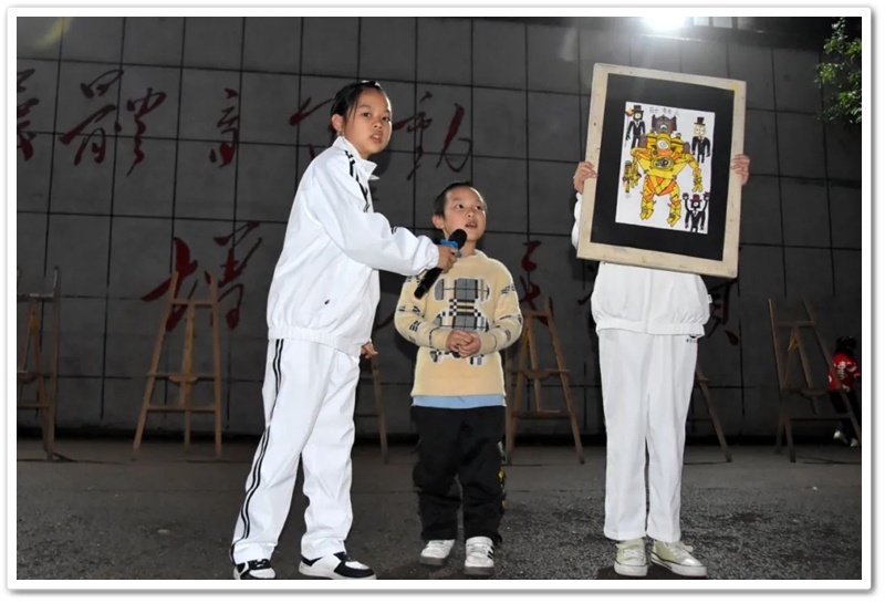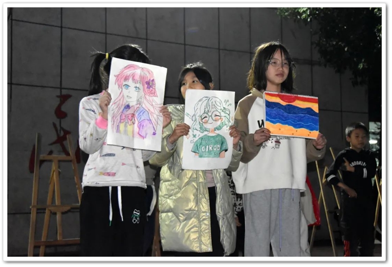 活动在舞蹈《动物们的狂欢》拉开了序幕,随着1号拍卖师的入场,在场的学生热情欢呼。首先拍出的作品是肖栋阳的彩铅画《贞观之景》,在拍卖师的一番解说下,叫买声此起彼伏,在物品交换队中,更是一派好热闹的景象,同学们手中的物品琳琅满目,让人眼花缭乱,有课外书籍、有崭新的笔记本,积木玩具,水果小花等,同学们的热情让小小画家们犹豫不决。接着,2号作品《阳光女孩》、3号作品《素描静物》、4号作品《汤圆》、5号作品《静谧的夜晚》、6号作品《萌萌哒女孩》、7号作品《Q版人物》、8号作品《糖果女孩》、9号作品《原神》、10号作品《时空人》陆续拍出。随后,自由拍卖环节中,同学们纷纷拿出自己的作品参与竞拍,至此,此次活动落下帷幕。