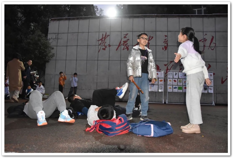 随着选手们的激烈比拼,活动来到了期待值早早拉满的“《水浒传》情节再现”环节,孩子们呼朋引伴,高兴登场,“武松打虎”、“智取生辰纲”等一个个精彩的“水浒”故事被孩子们搬上了舞台。