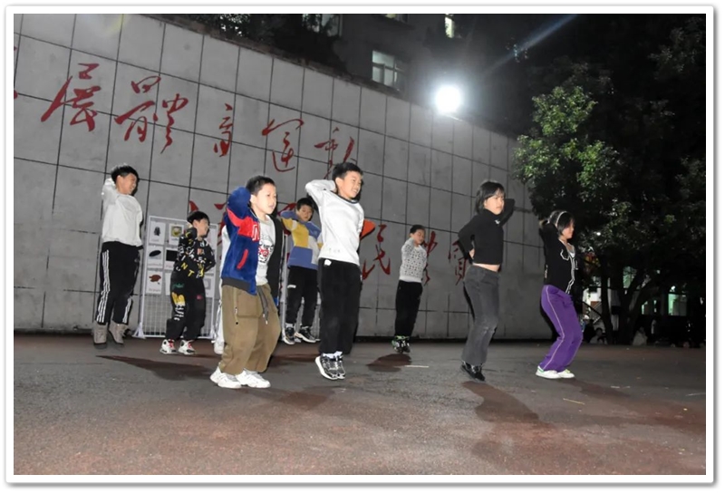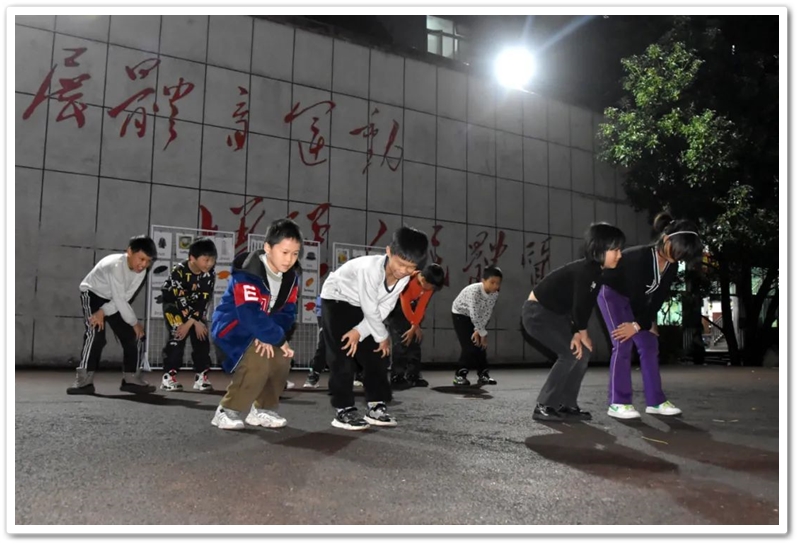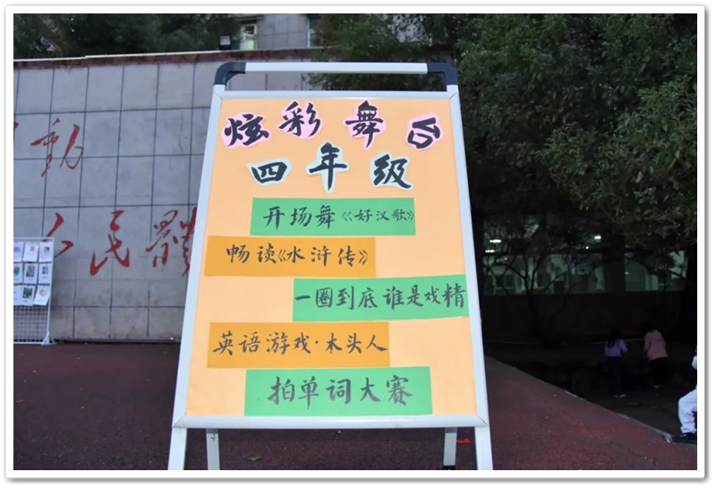 伴着《水浒传》主题曲《好汉歌》气势磅礴的旋律,四年级男生以其蓬勃的朝气,感染了运动场上的所有人。台下的观众,舞台旁排队等候参与活动的孩子们,都不禁随着音乐,跟着舞者,舞动了起来。