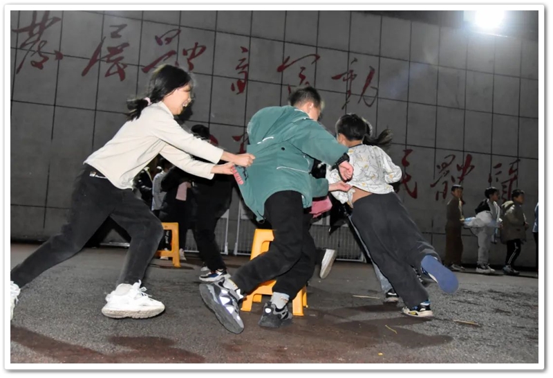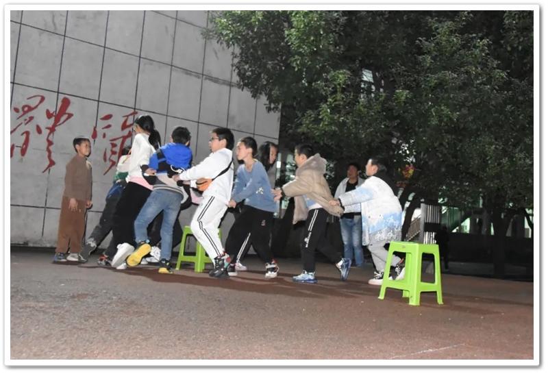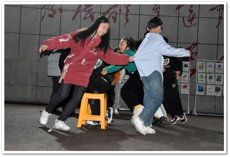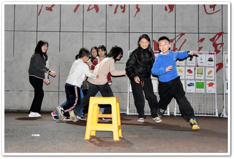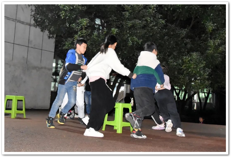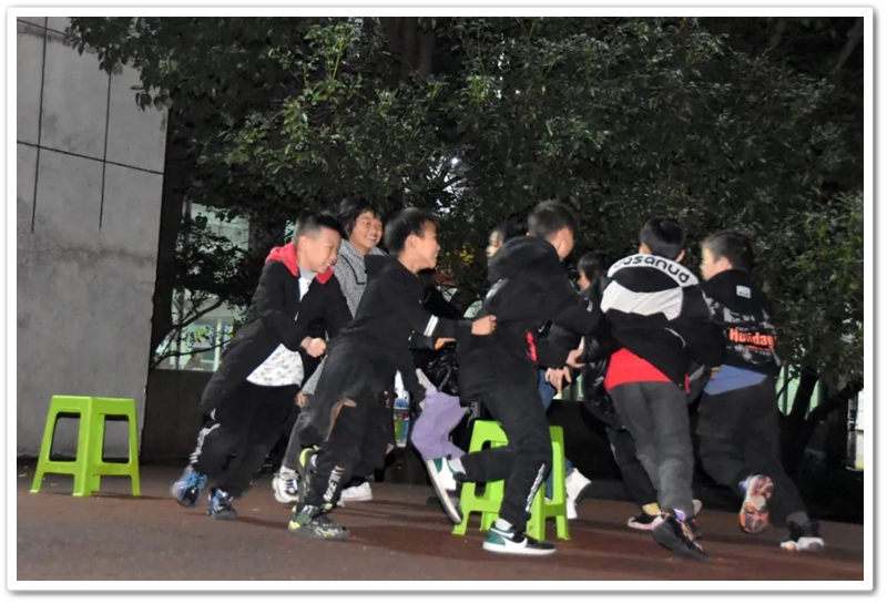 酣畅淋漓的英语版“木头人”之后,由数学组老师精心准备的游戏——一圈到底,也在彭升银老师的主持下拉开了帷幕。孩子们在老师的示范下,带着自己对游戏的理解,开始了这一考验团魂的游戏。