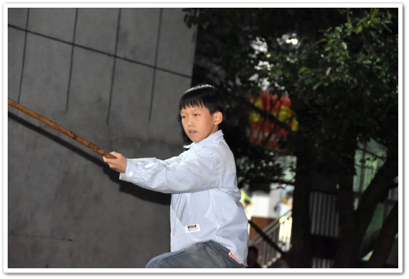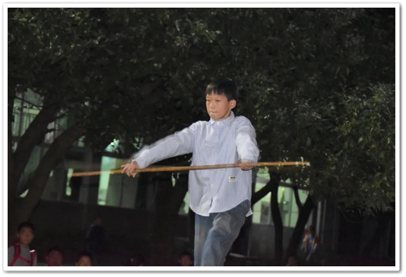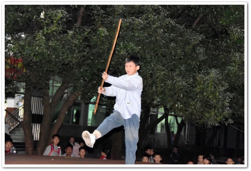 “水浒”主题活动的最后,四年级402班雷雨泽带来的武术表演,瞬间照亮了观众的武侠梦,当场求收徒。