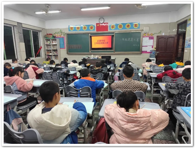 计算是小学阶段数学学习的重点,计算能力的培养也是小学数学教学的一项重要任务。为提高学生们的计算能力,正源学校小学部二年级于2023年12月13日举行了速算比赛。