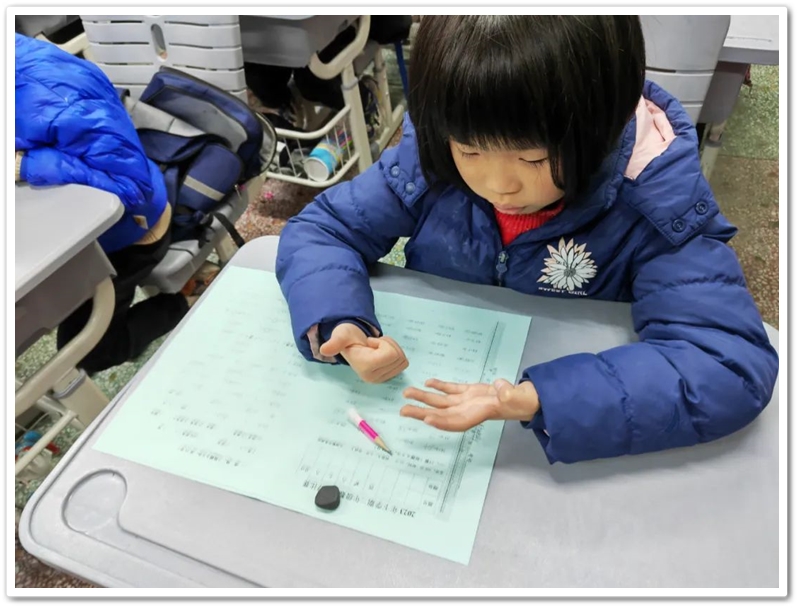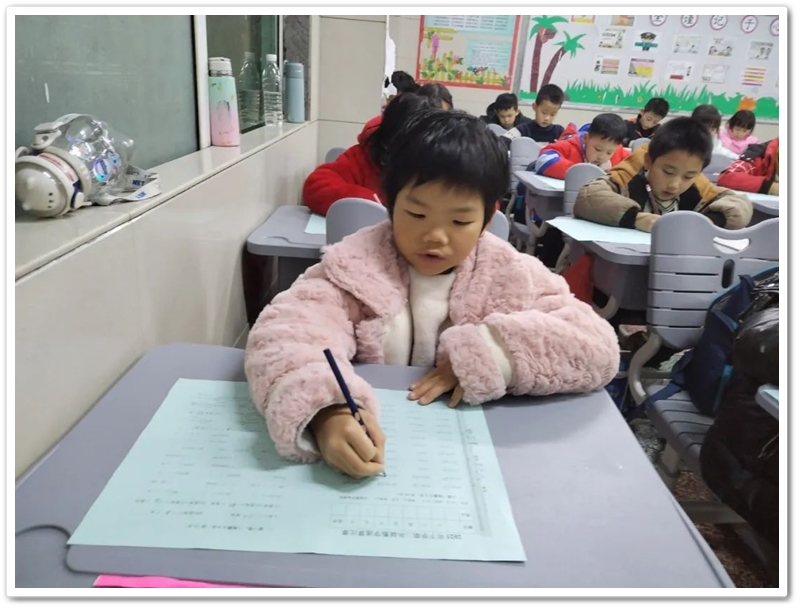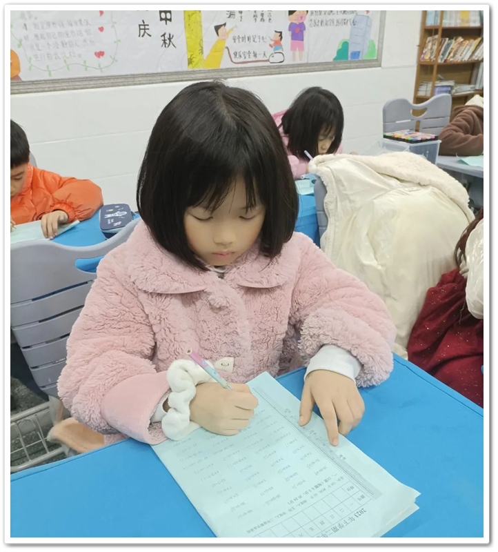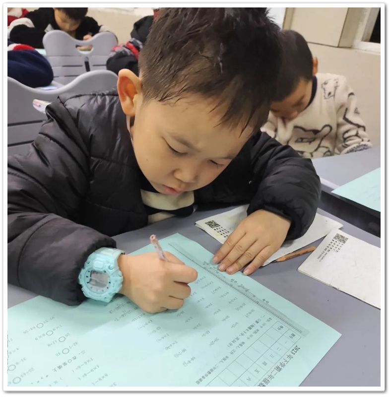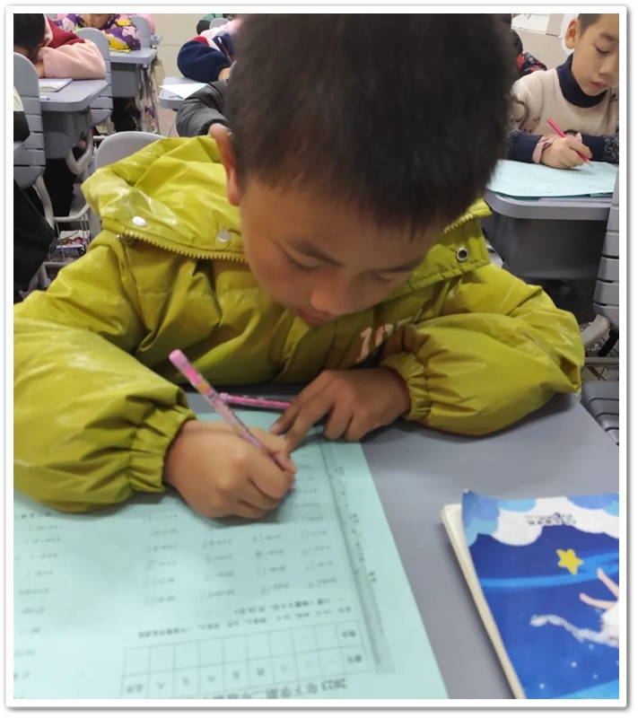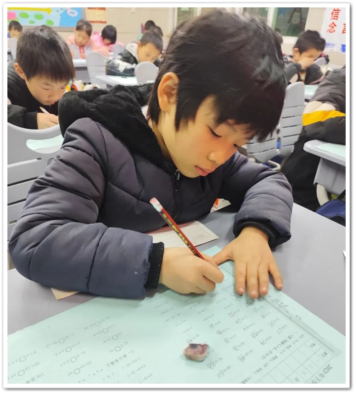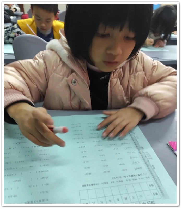 看!有些孩子正在掰手指,有些孩子正在草稿本上认真演绎...他们都在缜密思考,你追我赶,奋笔疾书,在完成所有题目后反复检查,势必要脱颖而出!