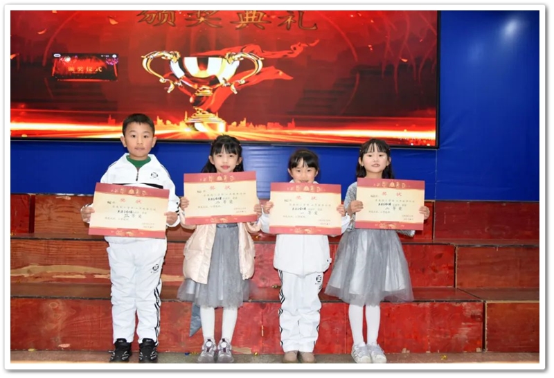 节目最后,小学部英语组长谢老师发表讲话,她用温柔又有力量的语言激励着一二年级的学生们再接再厉,努力学习英语,为将来打下坚实的基础,走向更大的世界。学生们深受鼓舞,热情回应。紧接着激动人心的时刻到了,在孩子们翘首以待的眼神中,小学部学部主任罗主任宣布了比赛结果,同时也为各班颁发了奖状:
