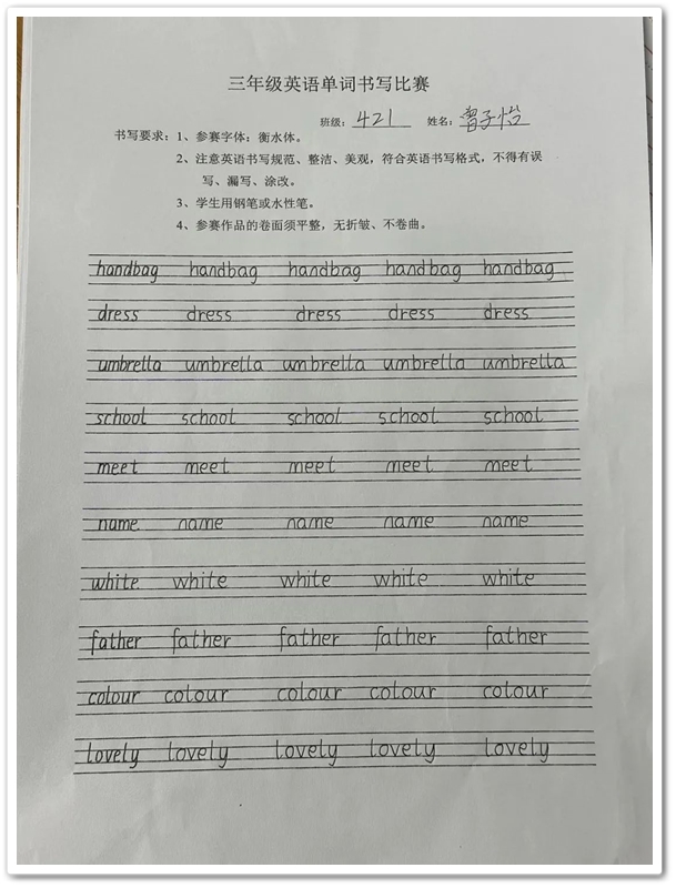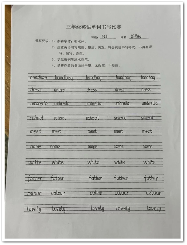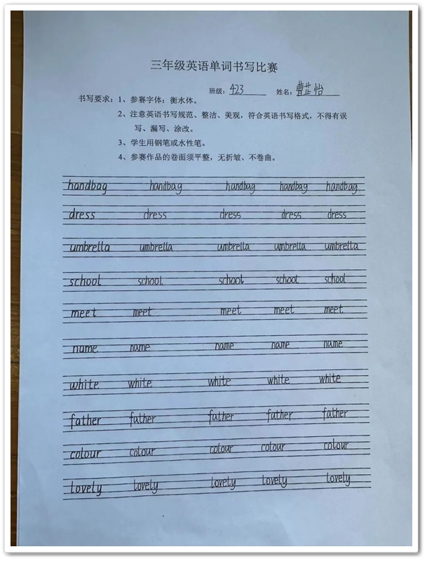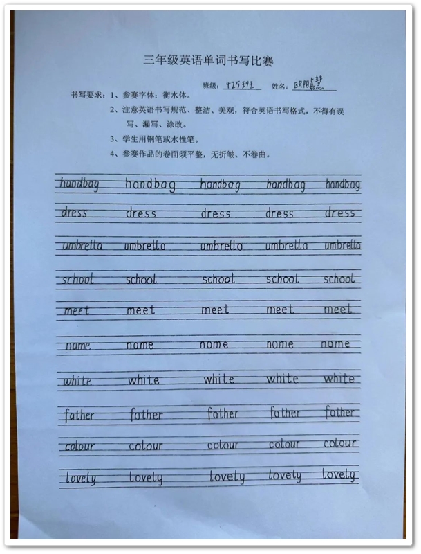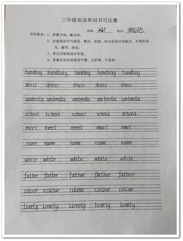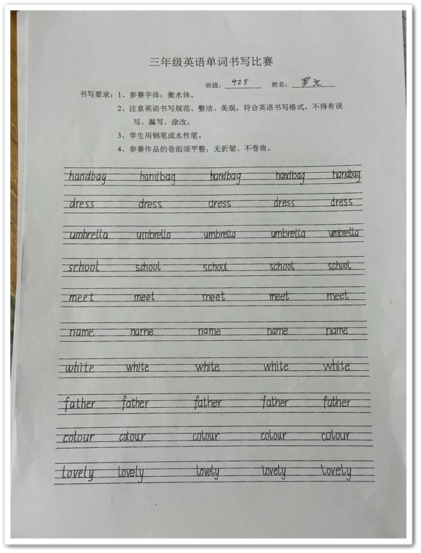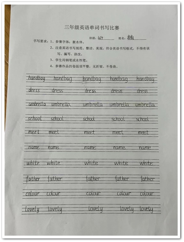 魅力笔尖,‘英’你而美——记正源小学三年级英语单词书写比赛