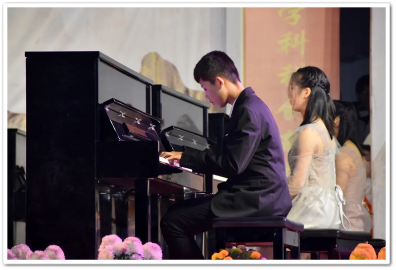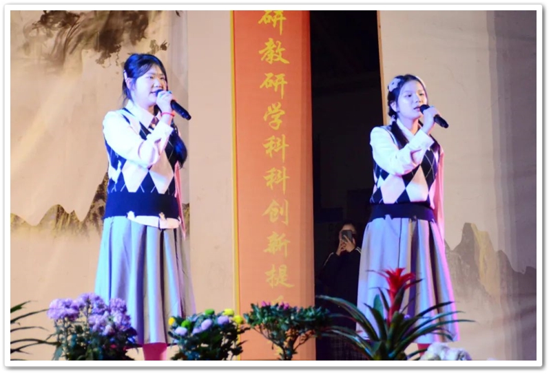 歌声婉转,琴声清脆,鼓点铿锵,古筝悠扬。民歌联唱《花儿为什么这样红》《月之恋》《高山青》,新教师独唱《不为谁而作的歌》,歌曲串烧《稻香》《飘向北方》,钢琴合奏《你笑起来真好看》,鼓筝合奏《象王行》,或欢快奔放,或舒展悠长,或清脆明亮,或柔美连绵,或优雅纯净,或交相辉映,听觉盛宴款款动人心。