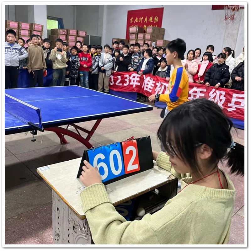 个人赛一共36人报名,进行的是激烈又残酷的单败淘汰赛,需要通过6轮的过关斩将才能获得冠军。团体赛是每个班派出5名选手,分别对阵,获得3场胜利胜出。开始进行小组循环赛,每个组4-5个班,这样可以让学生们更好的参与到比赛中去,小组前二晋级8强淘汰赛。经过为期一个月104场个人赛和团体赛的激烈角逐,12月29日,准初一年级乒乓球比赛正式落下帷幕。来自不同班级的选手们分别脱颖而出,乒乓球单打比赛冠军609班肖子然,亚军602班谢国豪,季军613班郑康,第四6名07班吴树胜。团体赛602班冠军、610班亚军、613班季军、607班第四名、598、596、609、600班优胜奖。他们的精湛球技和顽强拼搏精神让人印象深刻,更让人为他们的胜利而欢呼。