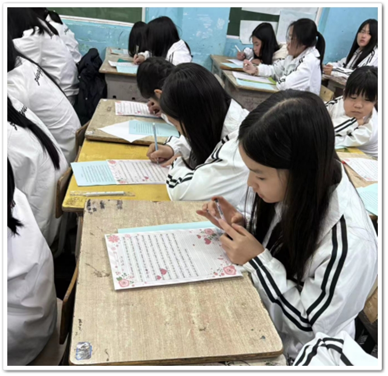从规范到精美的转变,不仅仅是技巧的积累,更是对英语文化理解的升华。在初赛阶段,同学们展现出了极高的热情和专注。他们坐姿端正,全神贯注,仿佛每一笔、每一划都在诉说着他们的故事。每一个字母、每一个单词、每一个句子,都经过同学们的仔细斟酌,字字见心,彰显着他们精湛的英文书写技艺。规范,已经成为了他们的一种习惯,而这种习惯,正是他们走向精美的基础。
