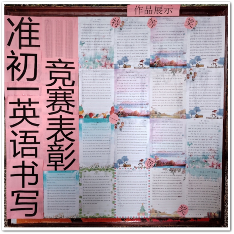 为了表彰这些优秀选手,年级组以墙报形式展示特等奖和一等奖学生的作品。这些作品不仅代表了选手们的才华,更是他们辛勤努力的成果。