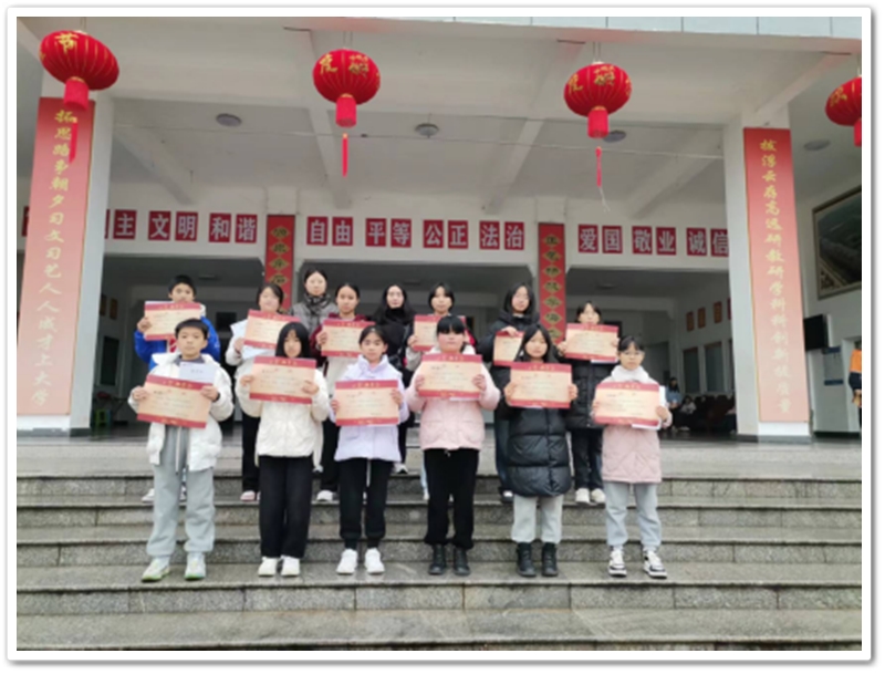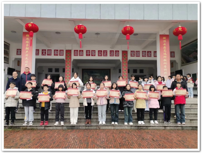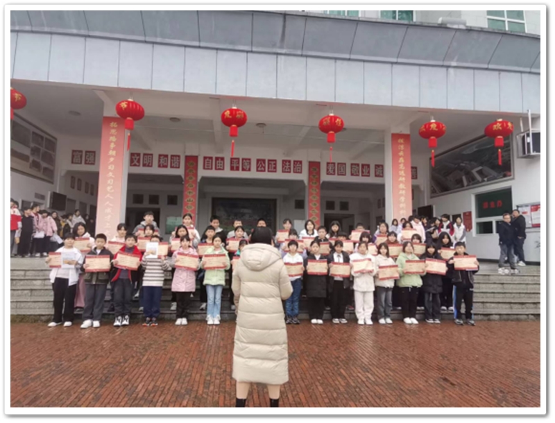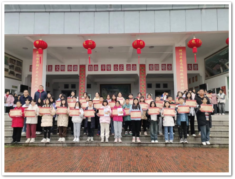 除此之外,每个参赛选手都获得了一份个人奖状,以表彰他们的参与和付出。这份小小的奖状不仅是对他们英语书写能力的肯定,更是对他们未来学习的鼓励。颁奖后,英语组王运香组长总结了此次书写大赛,表达了对获奖学生的肯定和鼓励。获奖学生分别与准初一年级行政和英语老师合影留恋。
