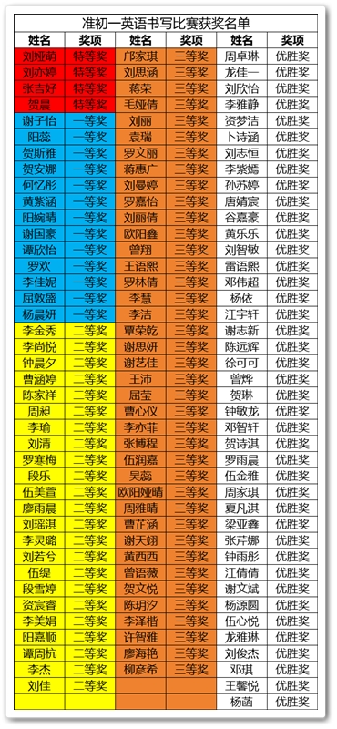 比赛结束后,老师们从卷面整洁度、内容准确度、书写规范度等方面综合评价参赛学生的书写情况。她们认真细致、公平公正地评分,评选出本次比赛的优秀作品。这不仅仅是对同学们努力的认可,更是对他们探索精神与追求完美的鼓励。经过激烈的角逐,特等奖、一等奖、二等奖和三等奖的得主一一揭晓。特等奖仅授予3名表现出色的选手。一等奖12名。二等奖和三等奖的获奖人数分别为20人和30人。