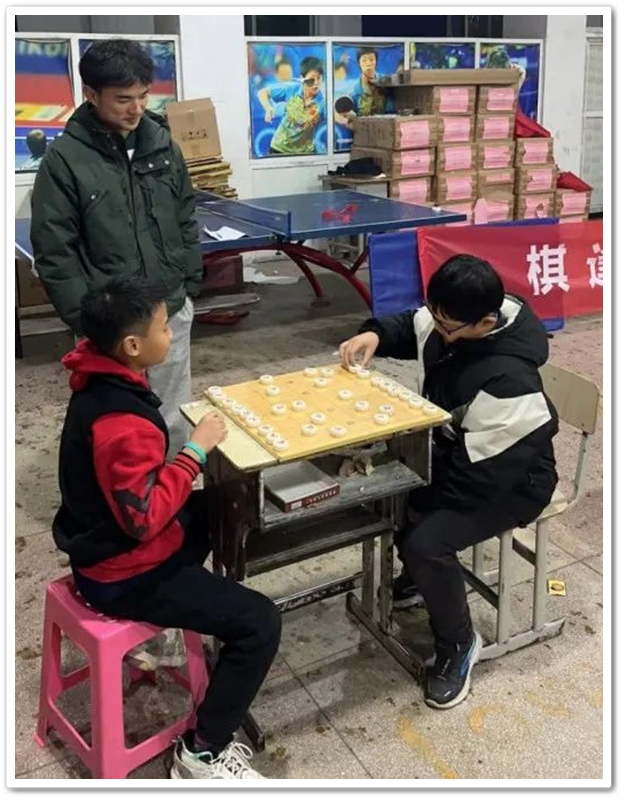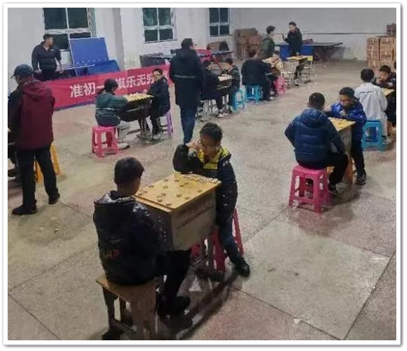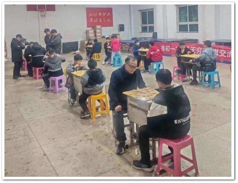为了丰富学生课余生活,培养智力和思维能力,在正源准初一年级主任曹秋文和体育老师的精心组织下,一场盛大的的象棋比赛于2024年1月5日晚上在乒乓球馆拉开序幕。这次比赛不仅是一场智力与策略的较量,更是学生们团队协作与个人拼搏精神的展现。年级行政亲自担任裁判,为学生们打造了一次精彩纷呈的对决。