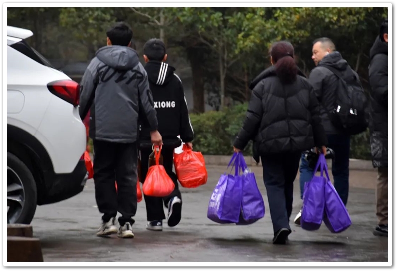 1月21日,假期托管的孩子们正跟着带班老师们在厨艺班、兴趣班、培优班及野炊营地里各得其所,一食堂已是香气飘飘、喜气洋洋。昨晚连夜筹备的福利年货已分门别类整装待发,在食堂门前陈列得满满当当。